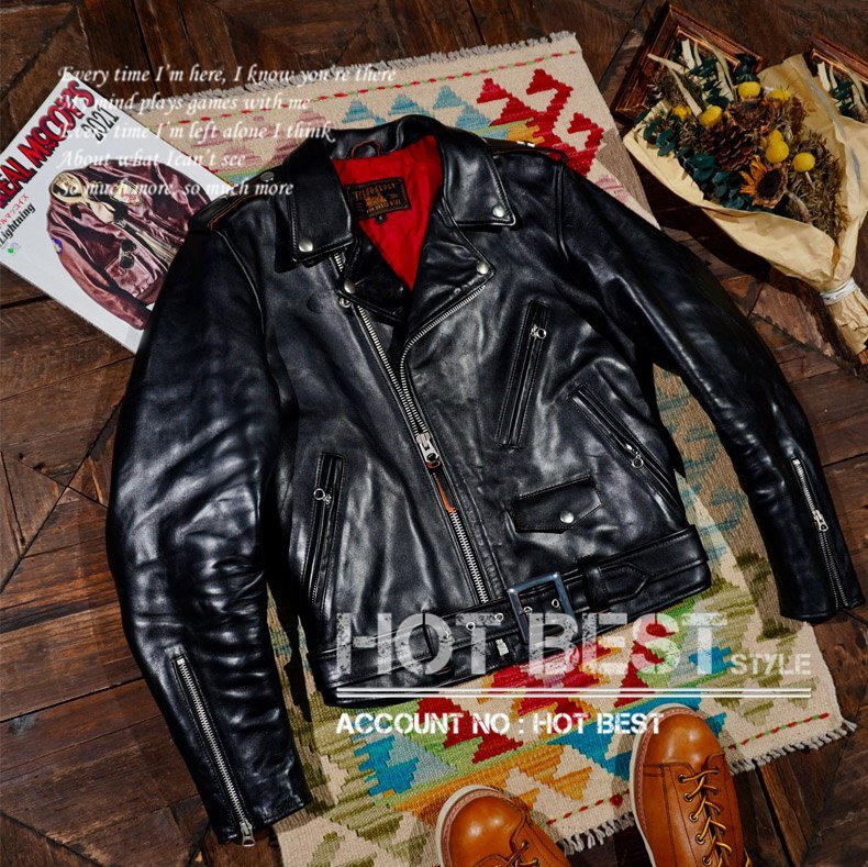 茶芯ホースハイド スタンダードスタイル メンズ 革ジャン ダブルライダース レザージャケット タンニンなめし 染料仕上げ 馬革 Y1215/XL