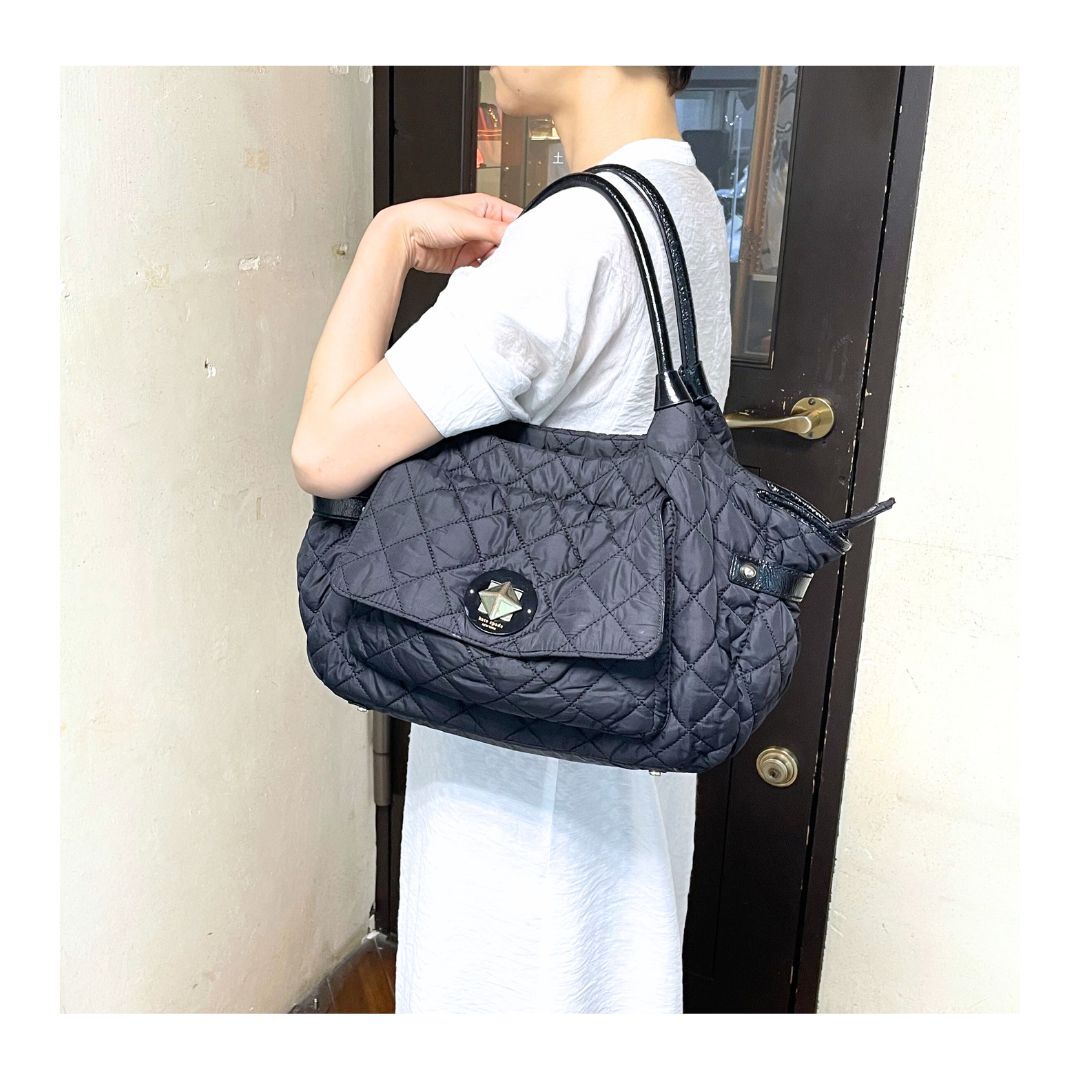 kate spade ケイトスペード トートバッグ 肩掛け ハンドバッグ キルティング エナメル ブラック 黒