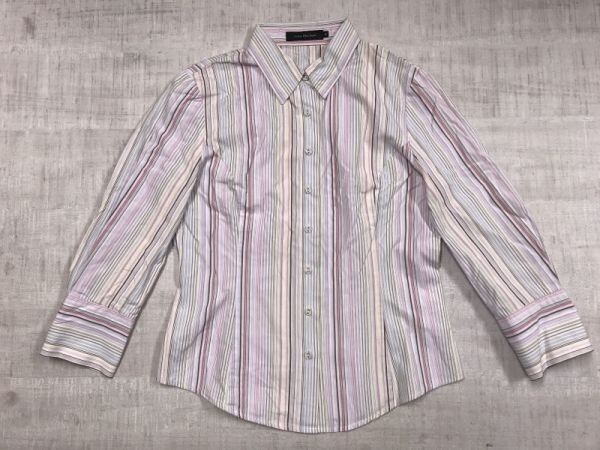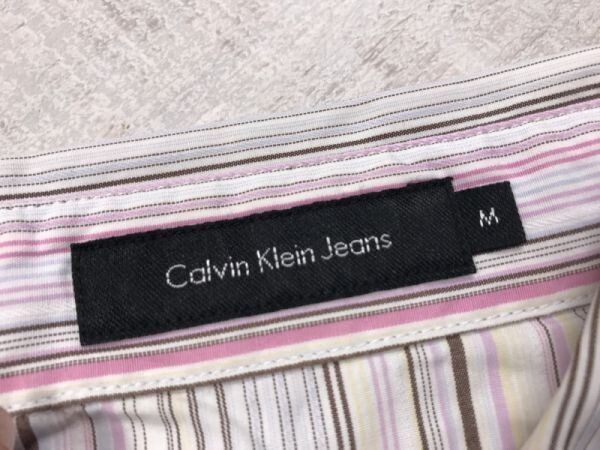 カルバンクライン Calvin Klein Jeans トラッド モード マルチストライプ 七分袖ドレスシャツ レディース コットン100% M ピンク系 です。