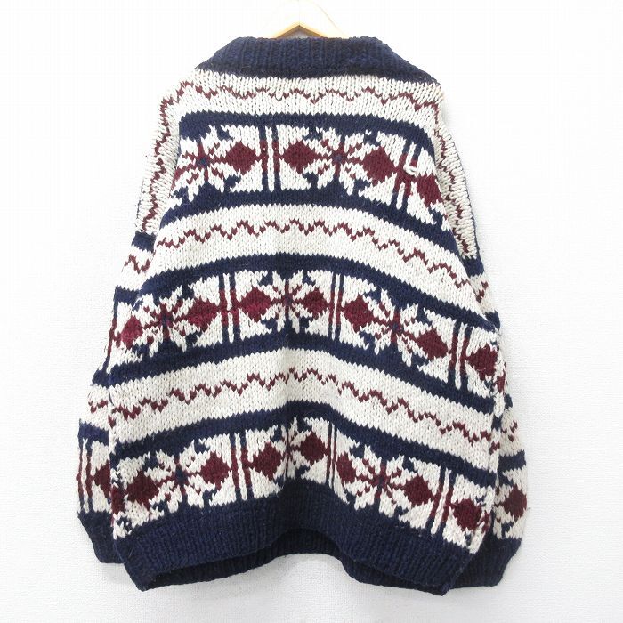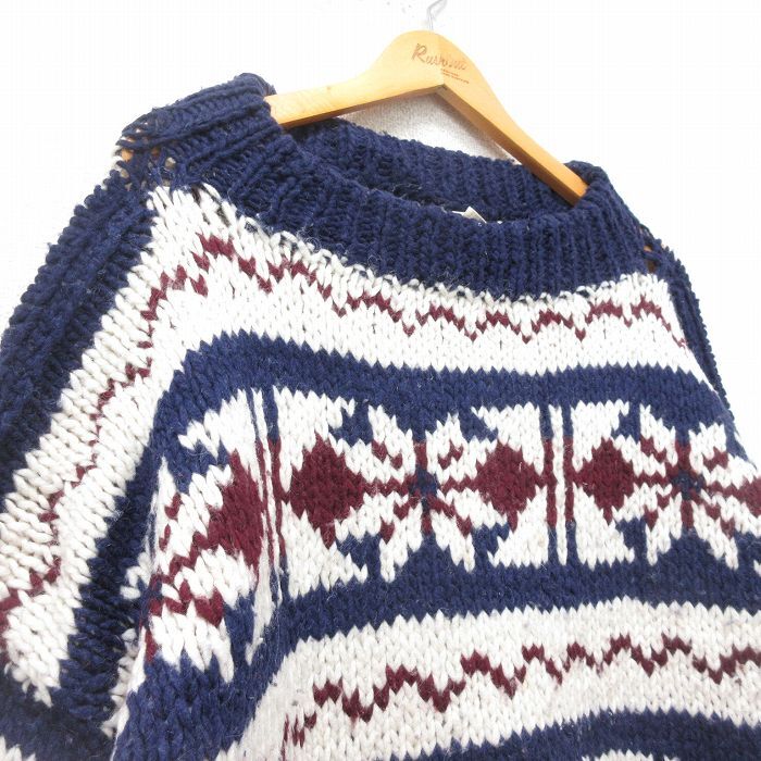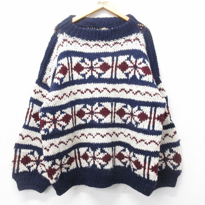 【商品名】 XL★古着 長袖 ノルディック セーター メンズ 雪柄 大きいサイズ ウール クルーネック エクアドル製 紺他【spe】