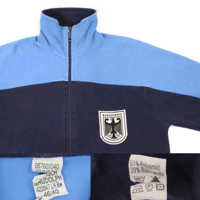 ドイツ軍のこのジャージは、経年でスライダーの持ち手が外れやすいですが、ジップ故障のない個体だけをピックしました。ドイツ軍のこのジップ、右側の差し込みをしっかり下まで差し込んでからスライダーを上げるよう気をつけてください。