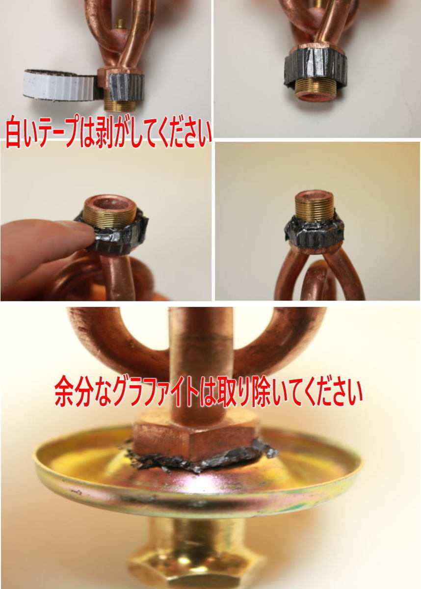 隙間から漏れる場合はガスケット部分に画像のようにグラファイトテープをご利用ください。
