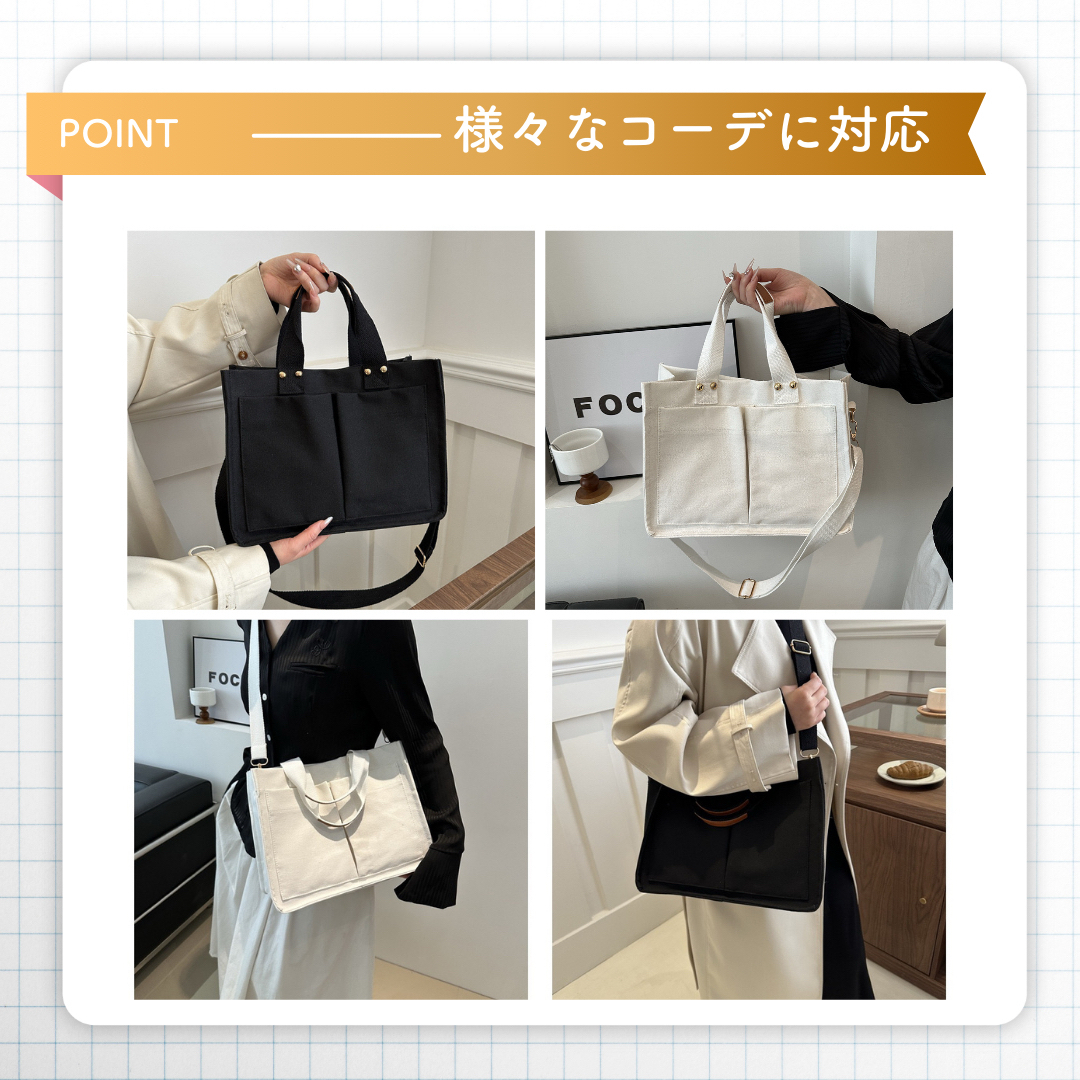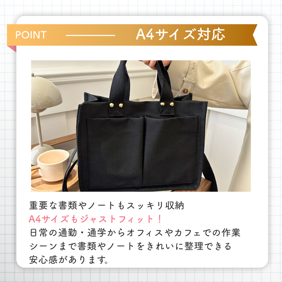 ◆ 大容量キャンバスバッグ|A4対応で毎日にちょうどいい ◆軽やかさと大容量を両立。あなたの毎日に寄り添う万能バッグ。通勤も通学も買い物も。これ一つで全部OK。