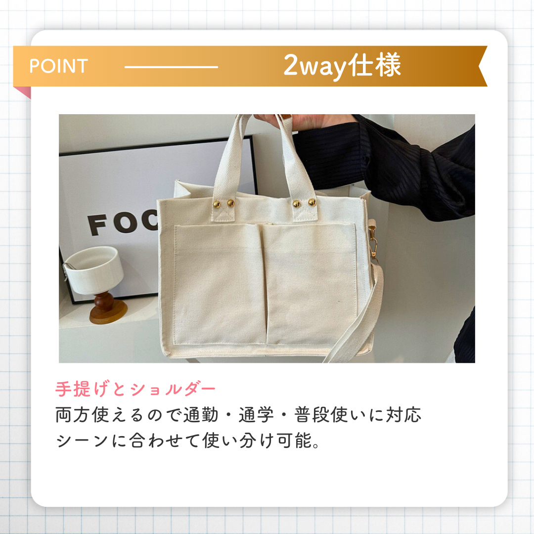 ベジバッグ キャンバスバッグ トート ショルダー バッグ 2way 通勤 通学 手持ち 手提げ 肩掛け 斜め掛け 大容量 シンプル 学生 帆布 ボディ