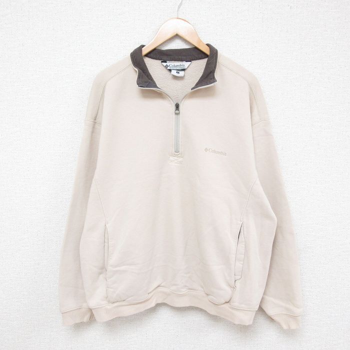 【商品名】 XL★古着 コロンビア Columbia 長袖 ハーフジップ スウェット メンズ 00年代 00s ワンポイントロゴ ベージュ
