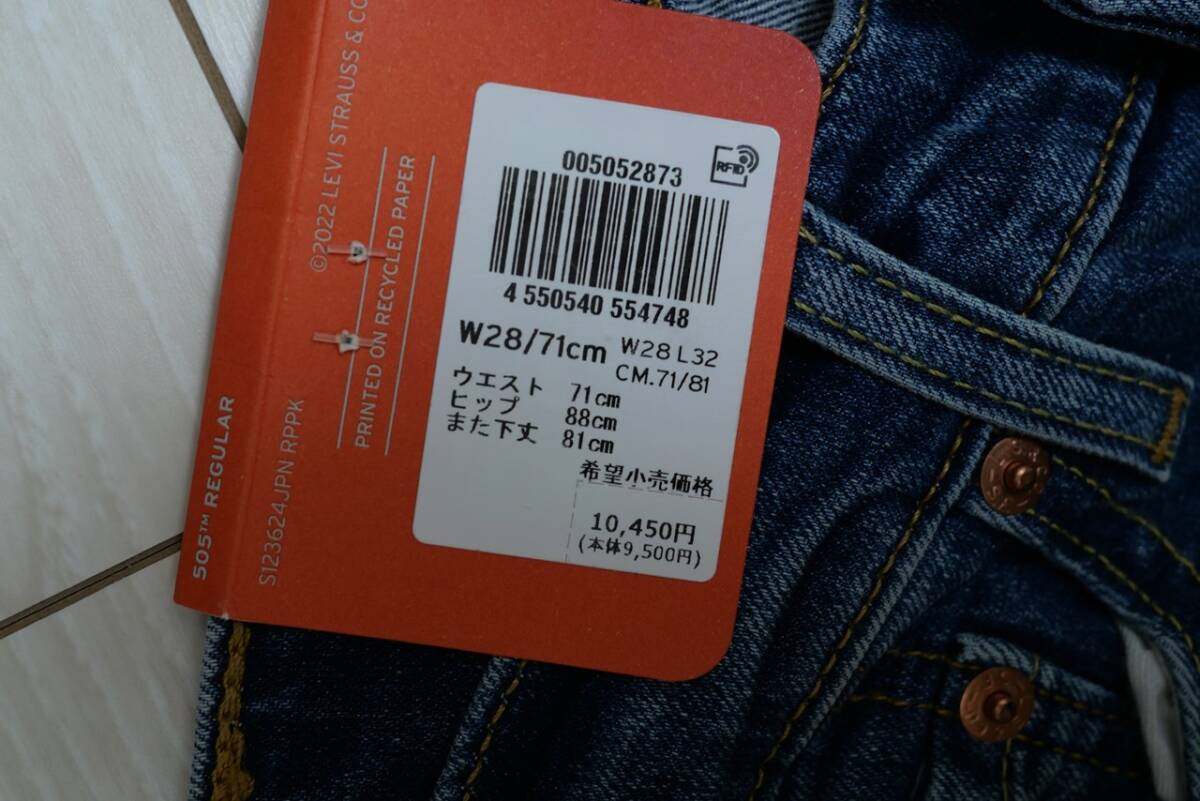 ・新品リーバイス00505-2873 W28 505 レギュラーストレート インディゴ・ミッドユーズド WARM ストレッチデニム 暖か 裏起毛 1着