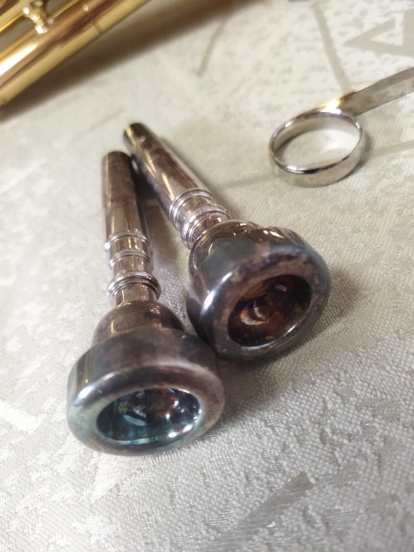 | ご覧頂きまして有難うございます。 ☆YAMAHA ヤマハ トランペット YTR1335/ヤマハ サイレントブラス YAMAHAケース付き☆ 当方、使い方が解らないためジャンク品としての出品です。 ジャンク品のため保証はございません。 見たままを書きますので画像・質問などでご理解頂けた方に如何でしょうか。 トランペット本体、サイレントブラス共に目立つ損傷は見られません。 音出し未確認。 ・トランペット本体 YAMAHA YTR1335 刻印 ・マウスピース 2個 YAMAHA 11CA/MB 7C ・YAMAHA ケース 小キズ・スレなどあり ・YAMAHA Silent BRASS 通電確認 電池部液漏れなし ピストンバルブ 普通に押せて戻ります。 抜差管 抜き差しできます。 以上、画像の物が全てです。 見た目と簡単な動作確認ですが調整など出来る方に如何でしょうか。 自宅保管品。 専門ショップなどではございません。 非喫煙・ペットなしですがアレルギー体質な方や過度に神経質な方、完全品をお求めの方は入札しないで下さい。 発送はケースの上から簡易梱包にて ゆうパック東京発 元払い100サイズのみとなります。 その他、気付かない点や見落としもあるかと思いますが説明文、画像、質問でご納得いかない場合や神経質な方、完全品をお求めの方は入札をお断り致します。 ノークレーム・ノーリターン・ノーキャンセルをご理解頂けた方からの入札をお待ちしております。 | |||