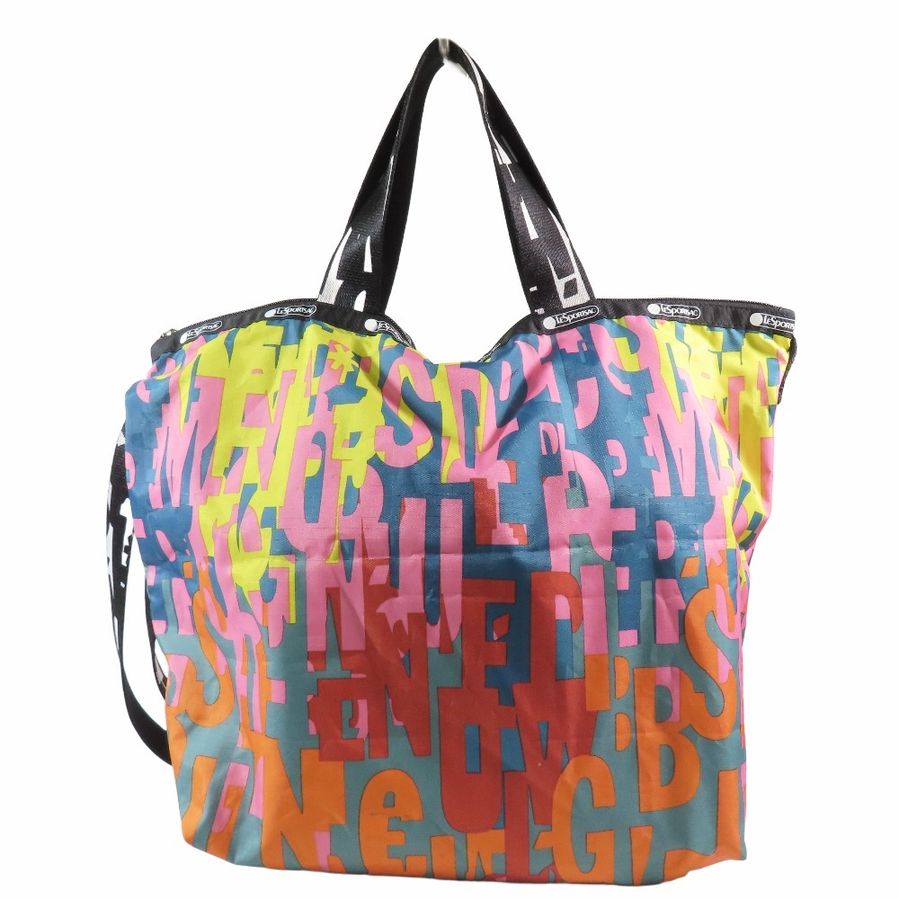 良品 LeSportsac レスポートサック 2way ボストン ハンドバッグ ショルダーバッグ アルファベット ロゴ 総柄 ナイロン マルチ
