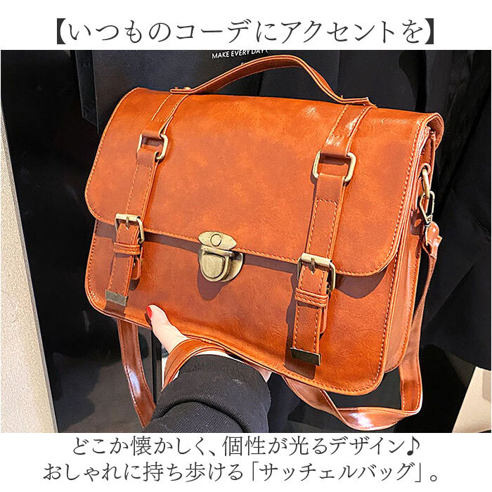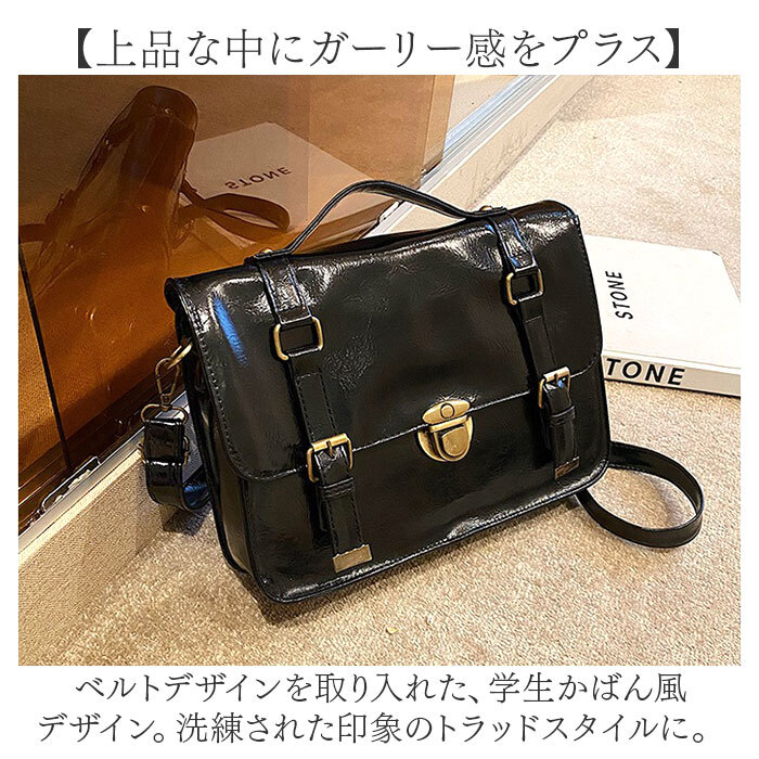 商品説明 | ・・【いつものコーデにアクセントを】 ・どこか懐かしく、個性が光るデザイン♪おしゃれに持ち歩ける「サッチェルバッグ」。 ・【上品な中にガーリー感をプラス】 ・ベルトデザインを取り入れた、学生かばん風デザイン。洗練された印象のトラッドスタイルに。 ・【お好みに合わせてスタイルチェンジ】 ・ショルダーを付け替えて、ショルダー&リュック使い。さらに手持ちもできる3way☆ ・【アクセントになるフラップデザイン】 ・アンティークカラーの金具がおしゃれ♪中央の金具をスライド&左右のベルトはマグネット式。 ・【ダブル開口でセキュリティ面も安心】 ・フラップを開けた内側には、天ファスナー。中身がこぼれ落ちず、プライバシーも確保。 ・【マストアイテムをひとまとめ】 ・B5対応のスリムフォルム。長財布やミニポーチなどがすっきり収まるサイズ感。 ・【サクッと取り出せて迷子知らず】 ・内側に2つのポケットを配置。バッグの中で小物を探す手間が不要。 ・【お気に入りを選べるカラー】 ・落ち着きがあり、コーデに馴染むベーシックカラー。キレイめスタイルにも素敵にマッチ♪ ・【ポケット仕様】 ・内側:ファスナーポケット×1、オープンポケット×1 |
