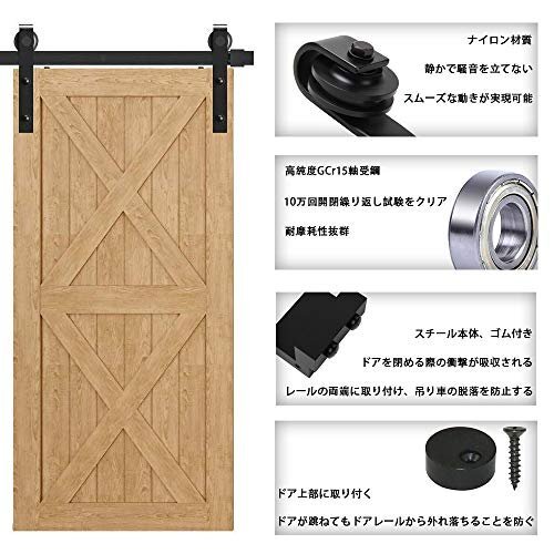 ブランド:ZEKOOカラー:Dタイプサイズ:4FT(1.22メートル)片引戸用保証期間5年,12万回開閉のテストを実験したのでご安心使用してください。荷物詳細:1xレール:あらかじめ穴を開け,組み立てに便利。2xハンガー4xスペーサー2xリミット器:扉を移動過ぎないように、軌道内で移動することに制限する役割です。2xアンチジャンプ器:扉が軌道内から落ないアクセサリーです。1x地上扉制御器:扉を並行移動する役割。1x説明書:組立にご案内いたします。【レール・ハンガーの材質】:高品質炭素鋼【仕上】ツヤ消し塗装【カラー】:ブラック【耐荷重】:100kgまで【レール・ハンガーの厚さ】:6mm【車輪材質】:高品質ナイロン【ドア別売】