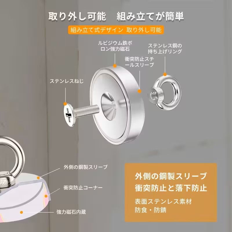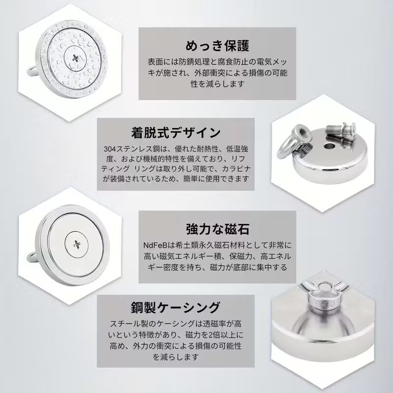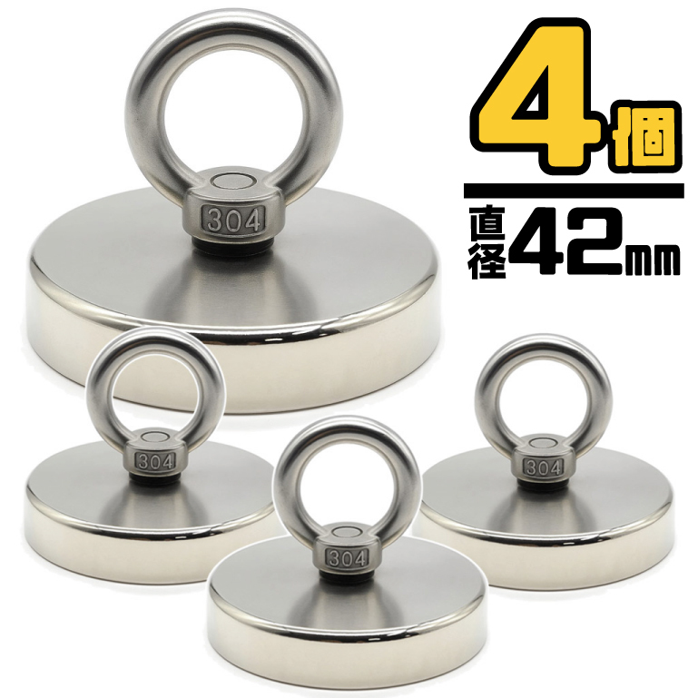 ★ ネオジム磁石を使用した強力マグネットフックです。直径42mm 4個セットです。