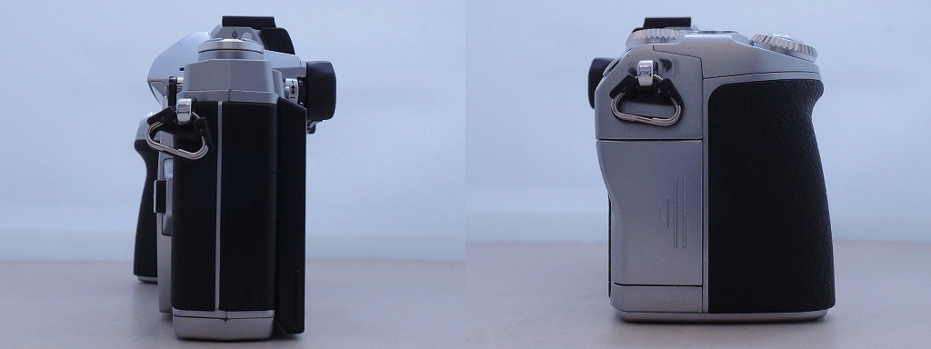 外観:レンズ装着付近、ストラップ取付部付近に塗装はげやキズが見られ、使用感は少しあります。