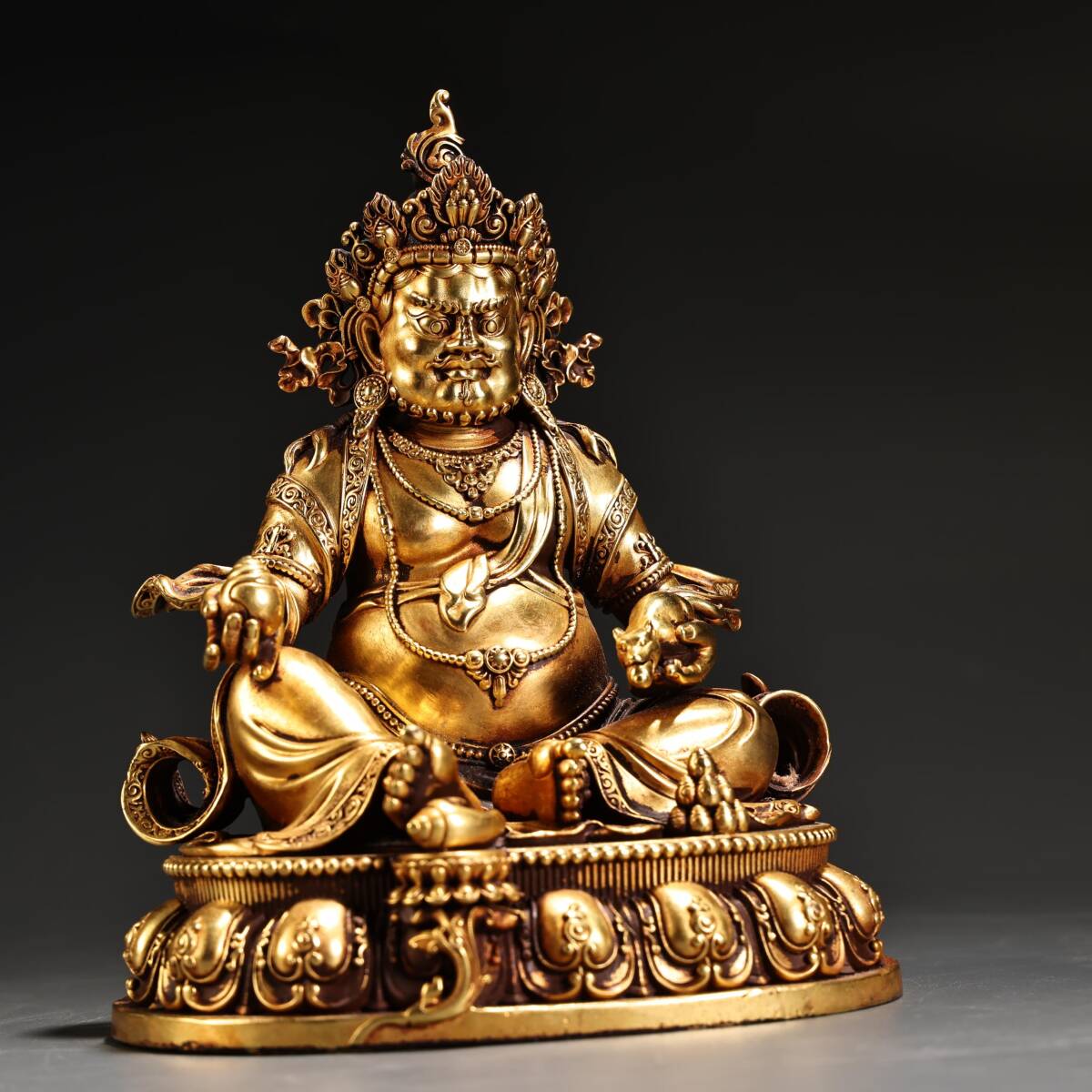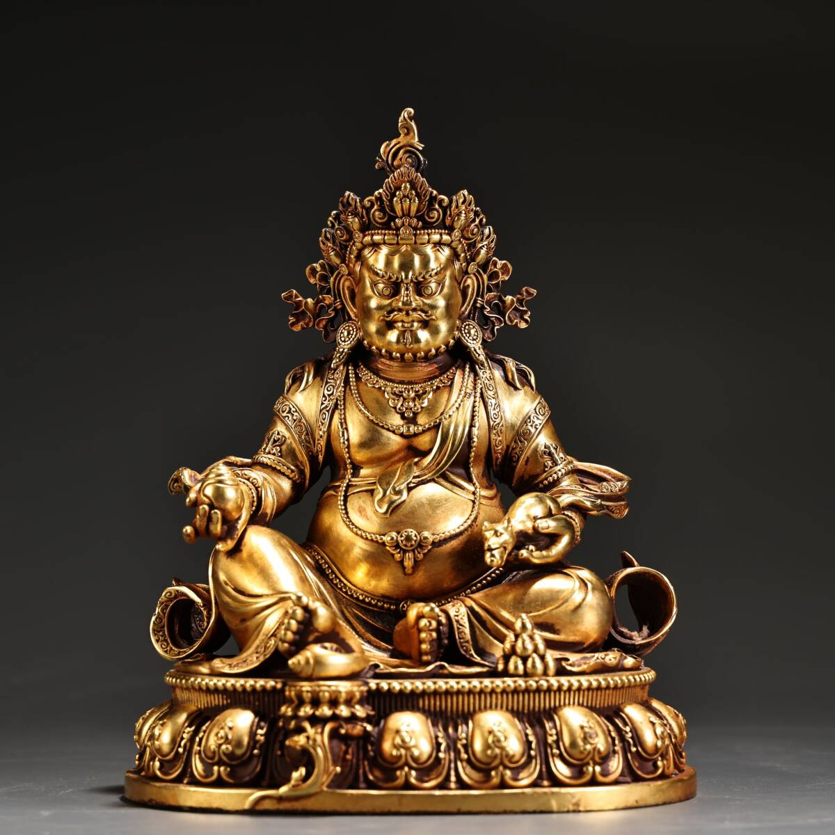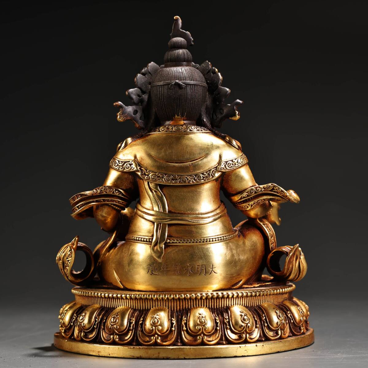 *珍品旧蔵* 大明 永樂年製 純銅 紫銅 高レリーフ鏨刻 塗金黄財神 蔵財神 仏像 奉納されていた 供養品 極細工 中国古玩 骨董品 古美味 H49