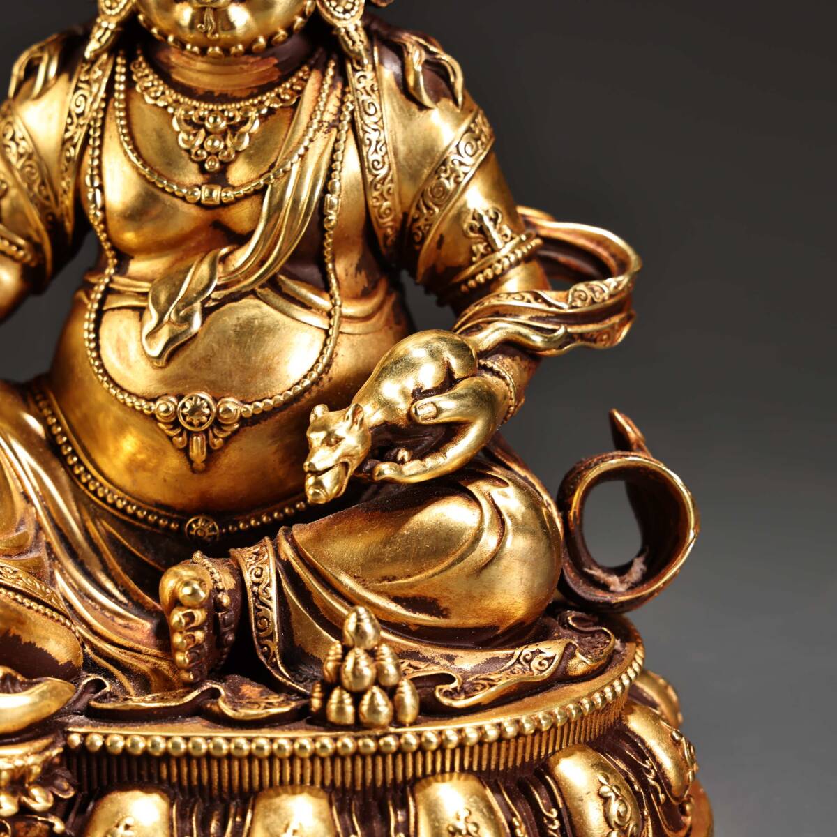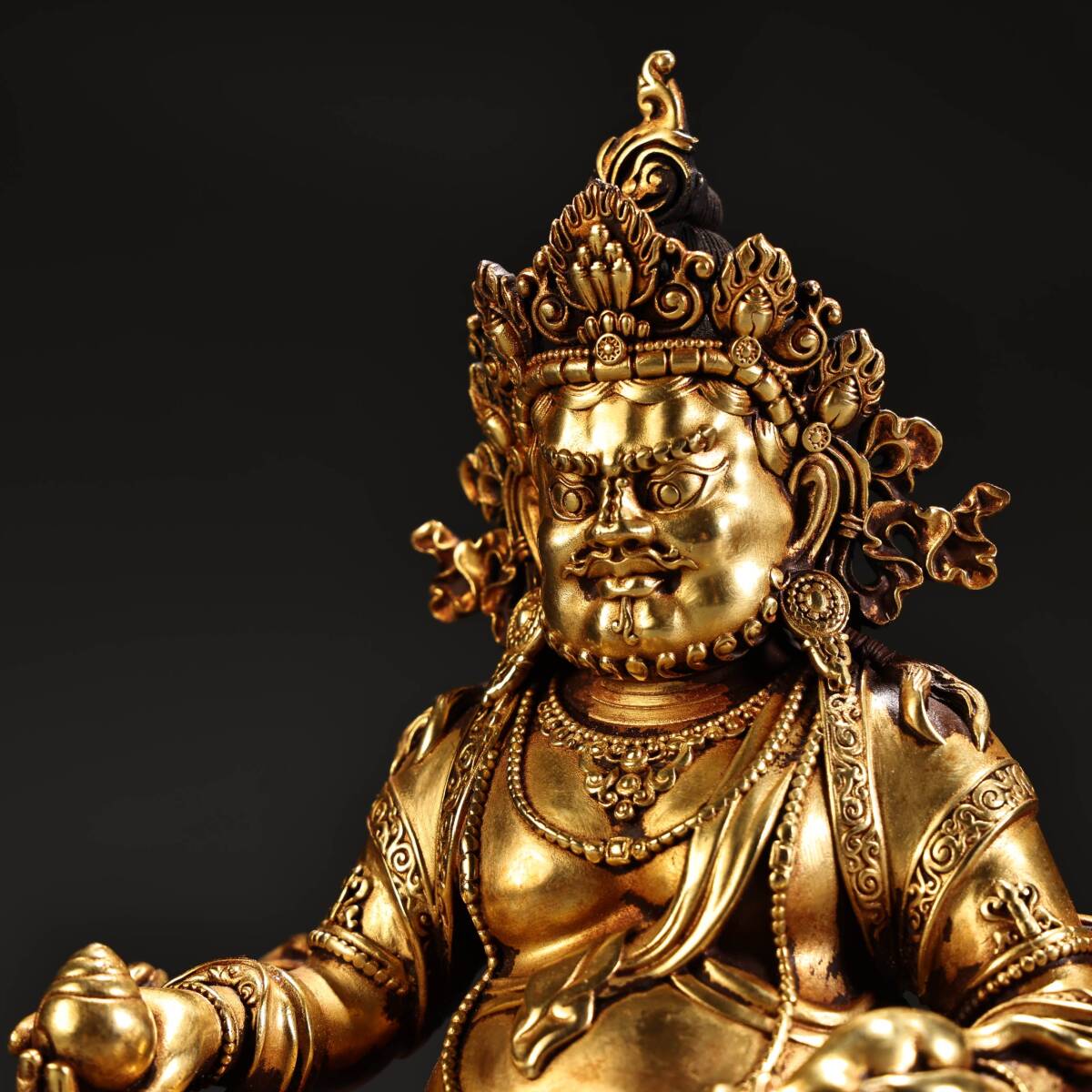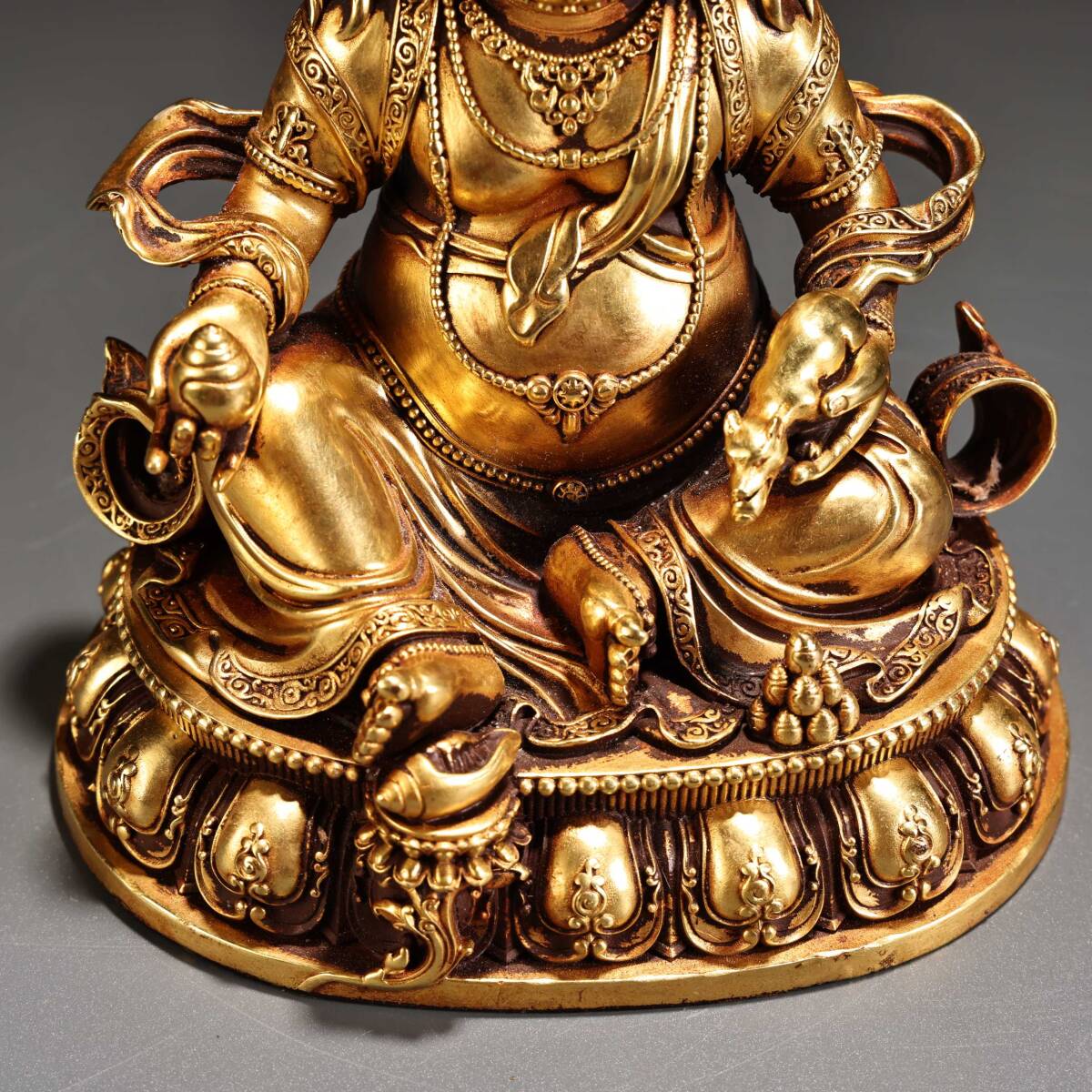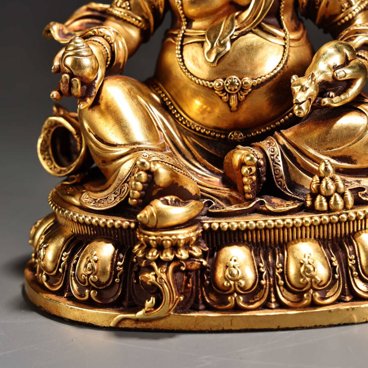 *珍品旧蔵* 大明 永樂年製 純銅 紫銅 高レリーフ鏨刻 塗金黄財神 蔵財神 仏像 奉納されていた 供養品 極細工 中国古玩 骨董品 古美味 H49