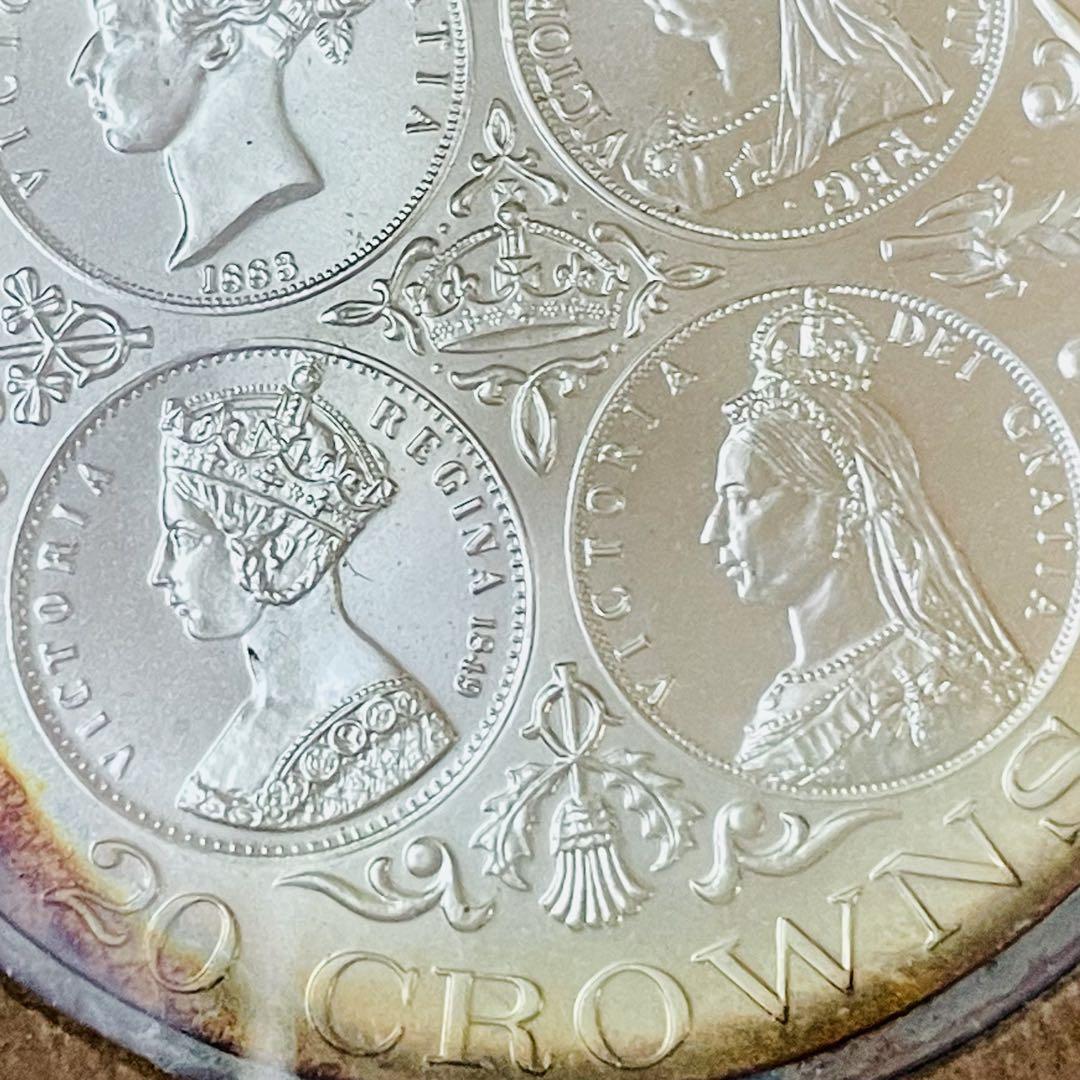 【超レア!1976 ヴィクトリア女王 4肖像 20クラウン 銀貨】イギリス領 タークス・カイコス諸島 ヤングエリザベス ジュビリー アンティーク