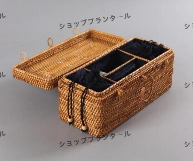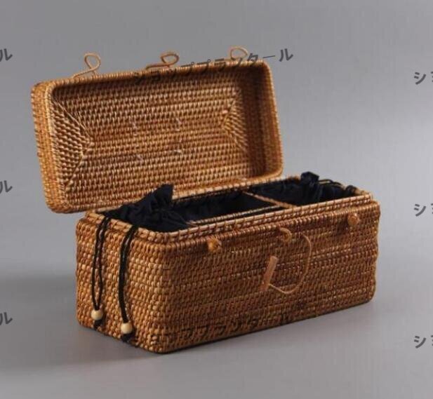美品 藤工芸 提籃籠 收納盒 茶道具籠 茶具 細工 收納