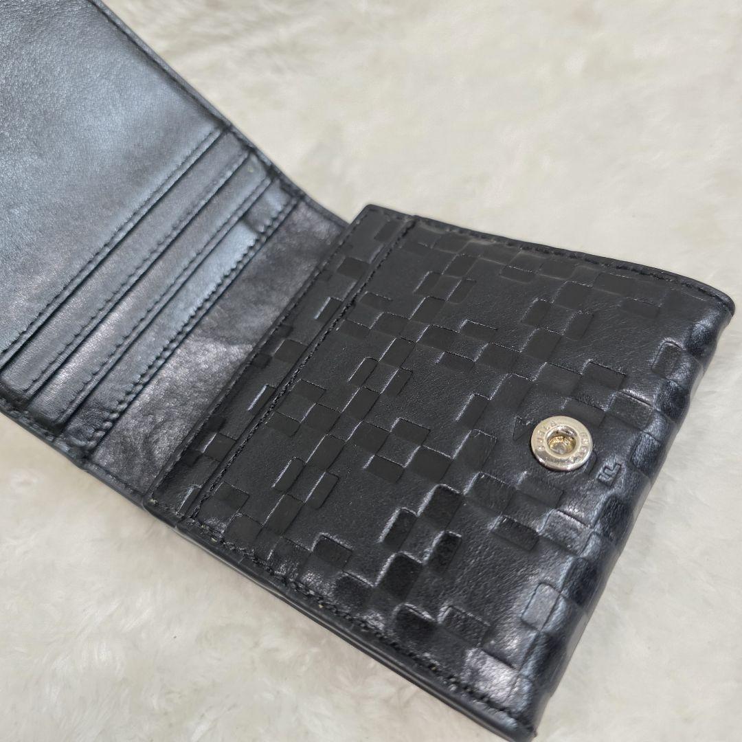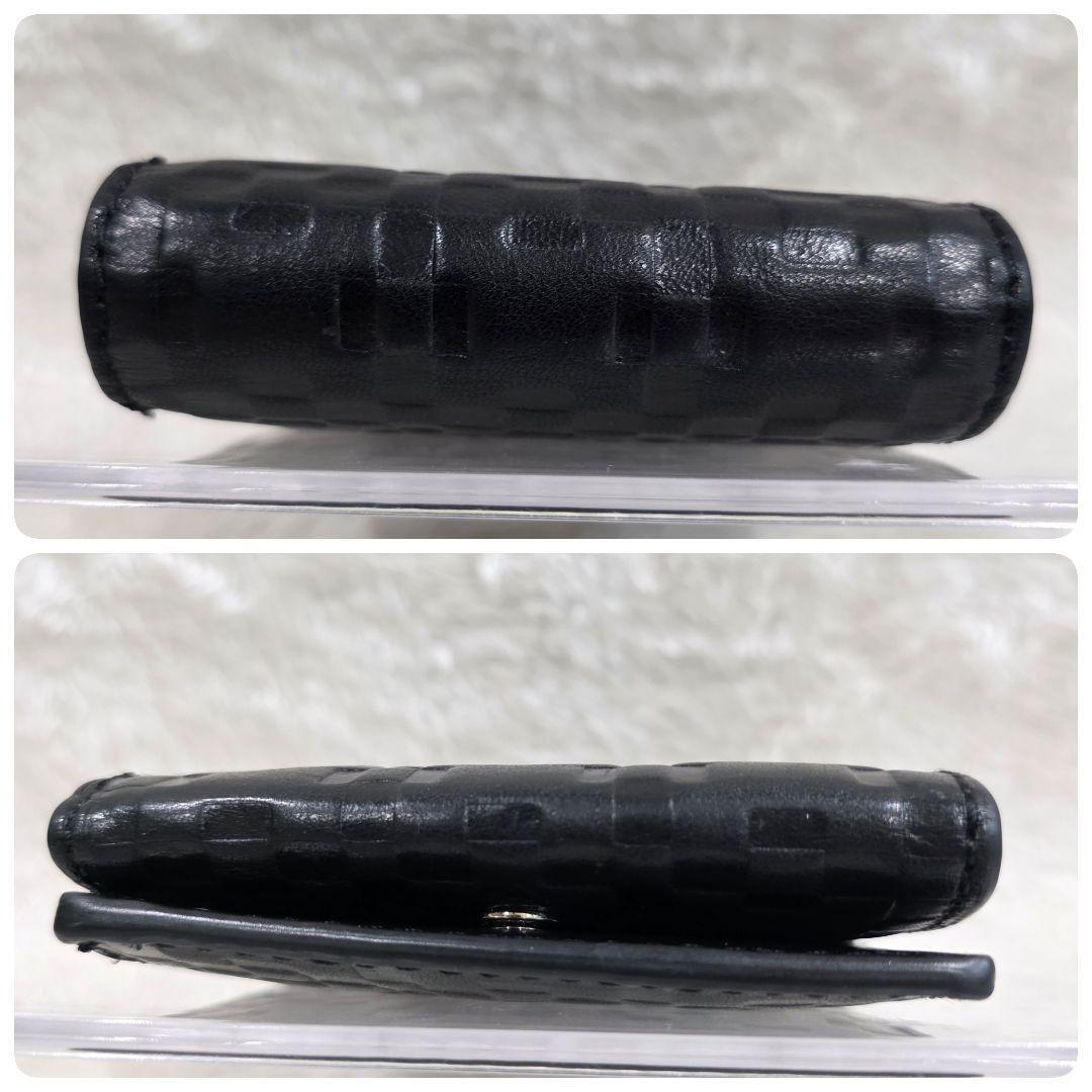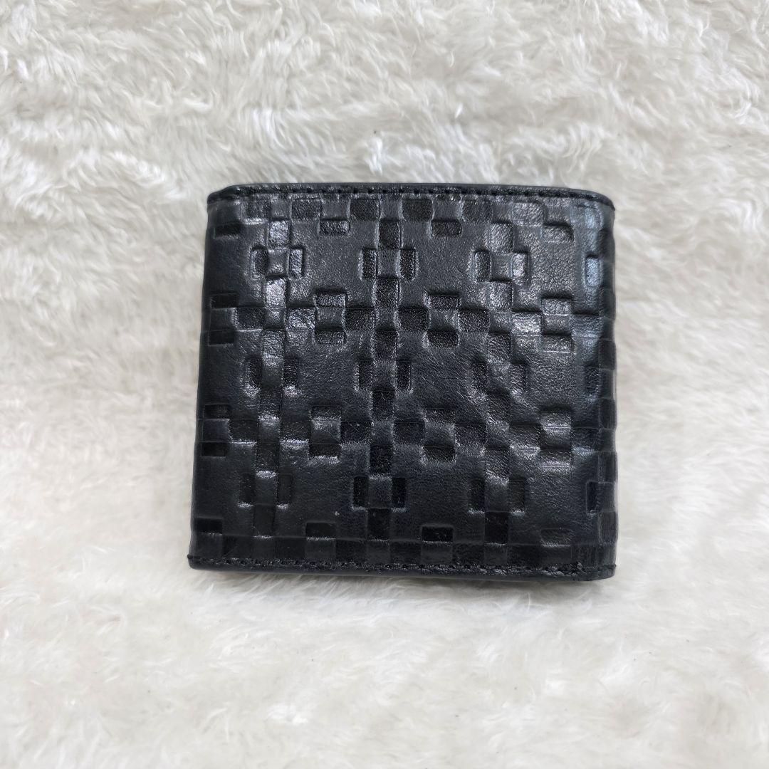 上質なブラックレザーに格子柄の型押しデザインが高級感を演出。