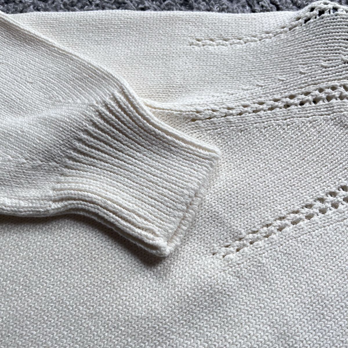 お色はオフホワイト系。ざっくりとしたニット編み。