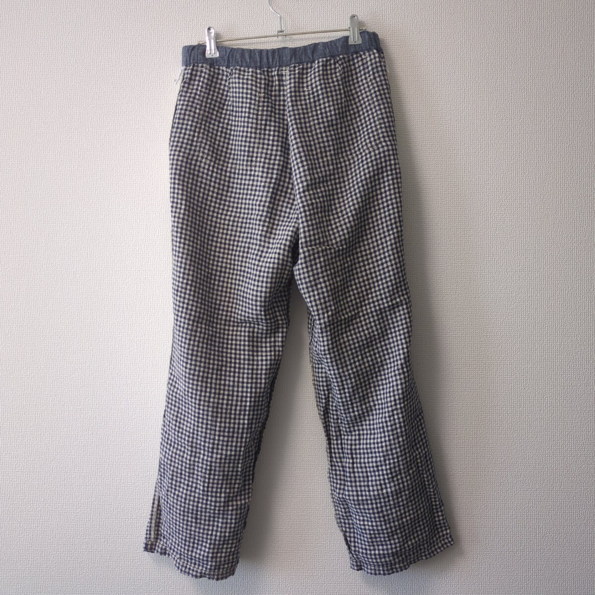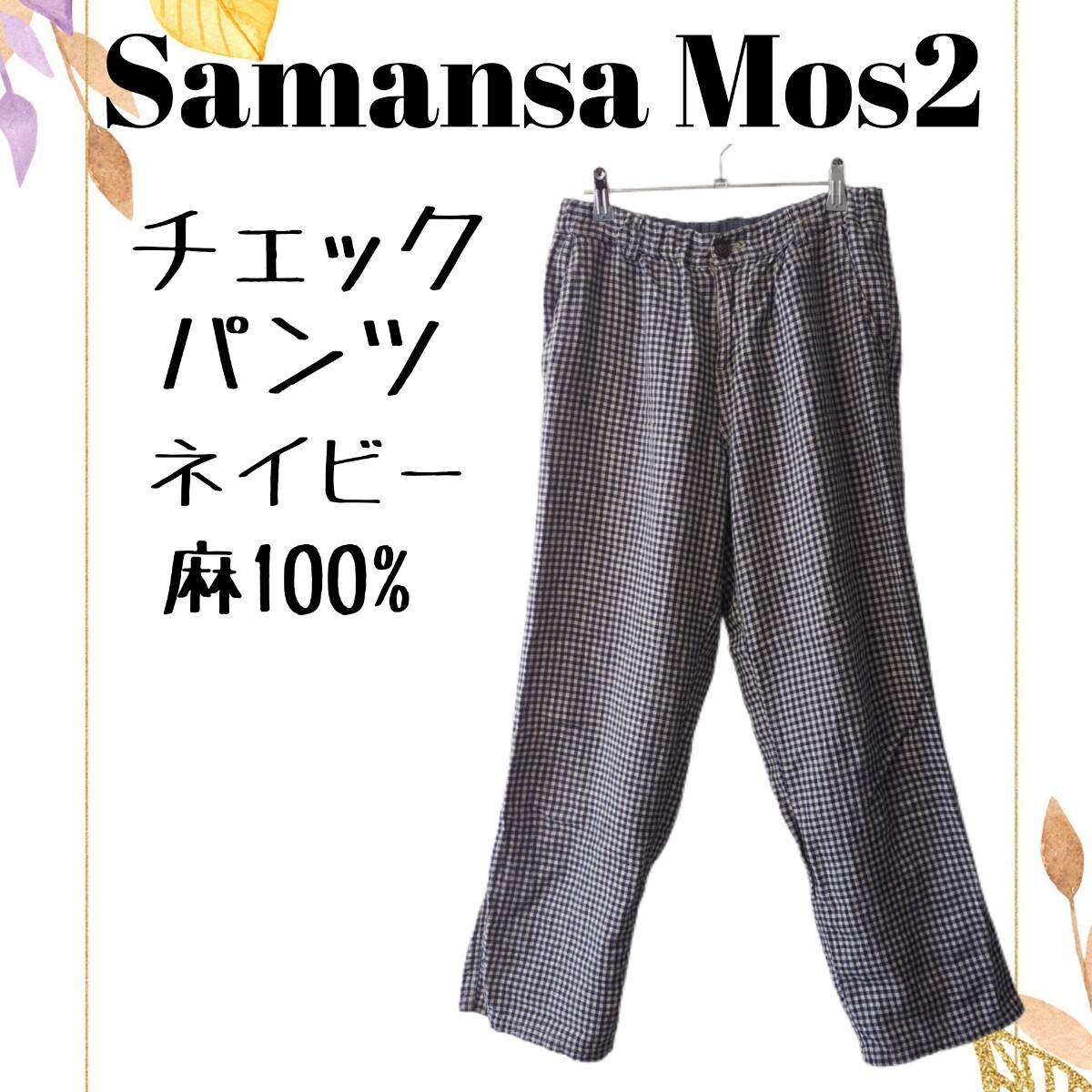 新品 Samansa Mos2 サマンサモスモス リネン100% チェックパンツ ネイビー 紺 春夏