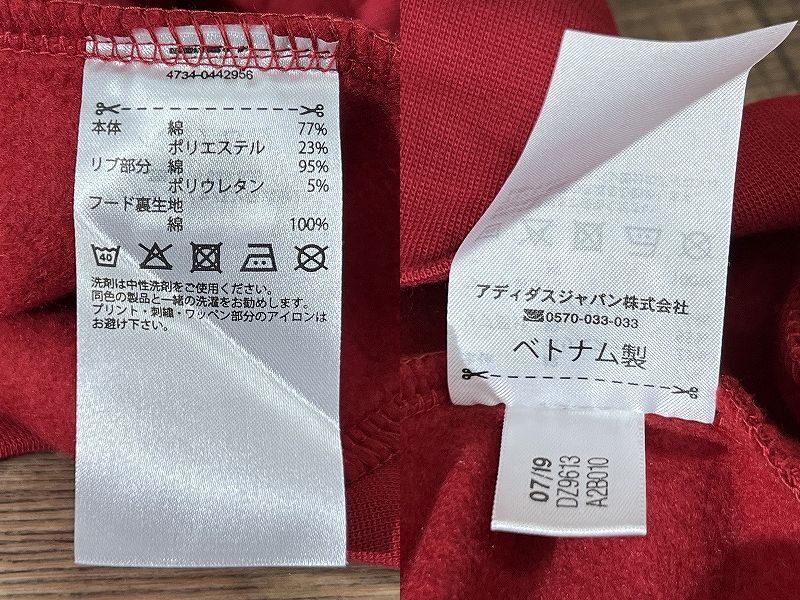 送無 G② 2XO 大きいサイズ 使用感の少ない美品 adidas アディダス DZ9613 TANGO STREET 裏起毛 スウェット フーディー パーカー 赤 レッド