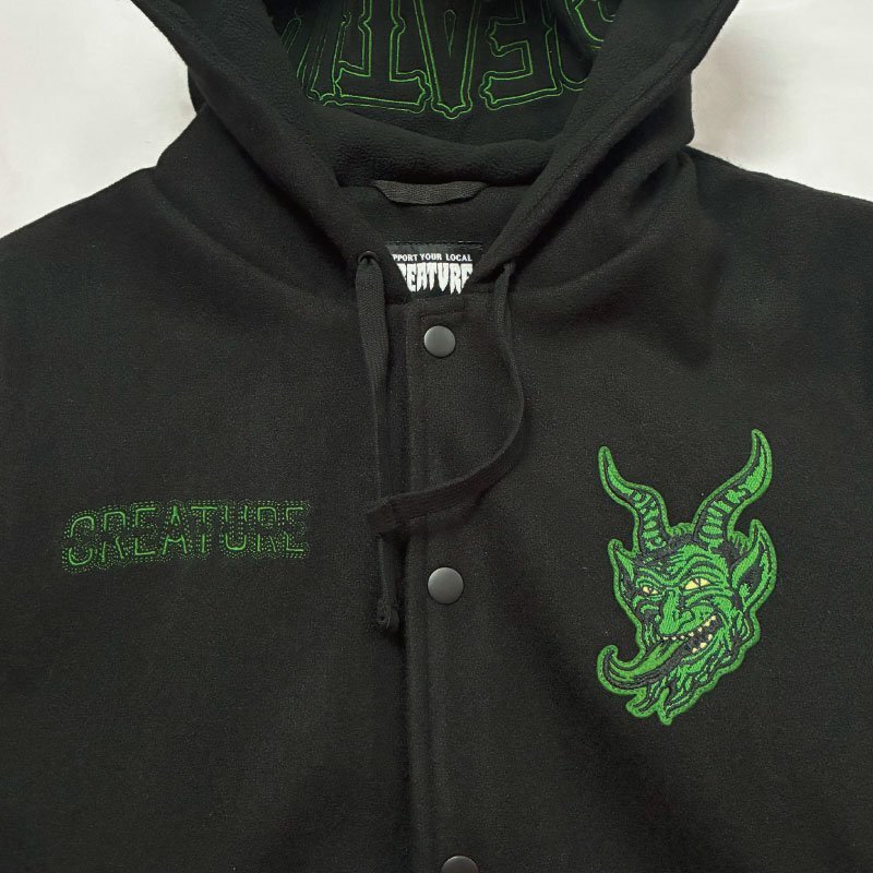 CREATURE(クリーチャー)のフード付きスタジャン。
