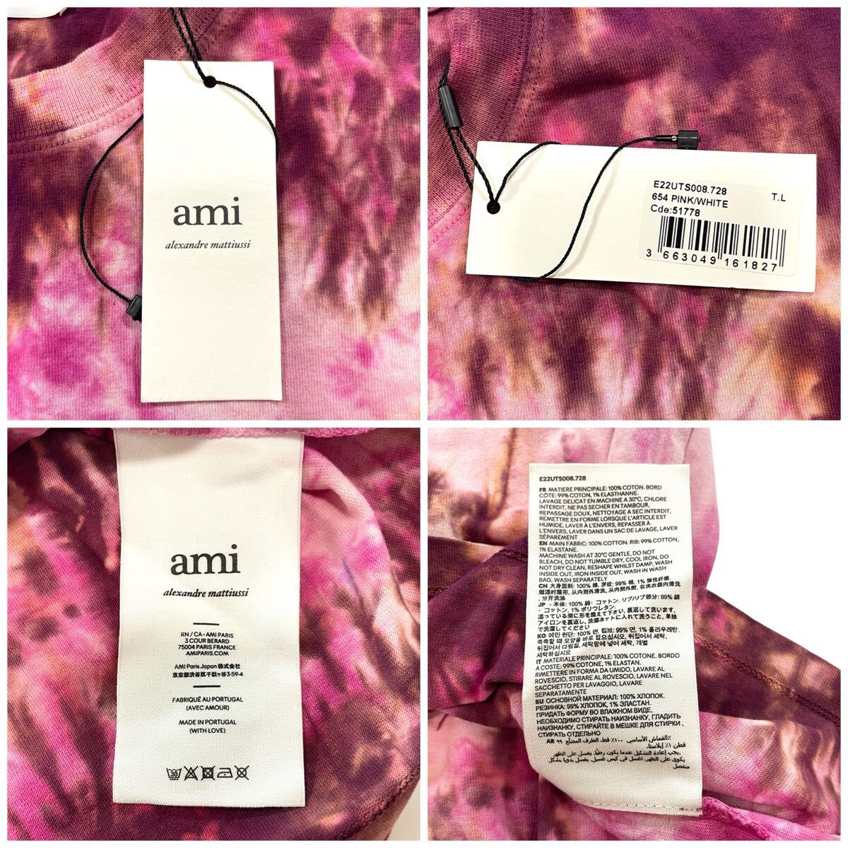 | 商品タイトル: 新品 未使用 ami paris アミパリス アミ アレクサンドルマテュッシ半袖 Tシャツ タイダイ染め ピンク Lサイズ メンズ 総柄 ロゴ刺繍 フランス・パリ発の人気ブランド AMI Paris のTシャツ。 鮮やかなピンクのタイダイ染めが存在感抜群で、コーディネートの主役になる一枚です。 後ろ首元には「AMI」刺繍入り | ||||||||||||||