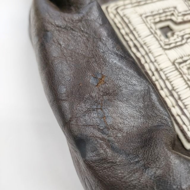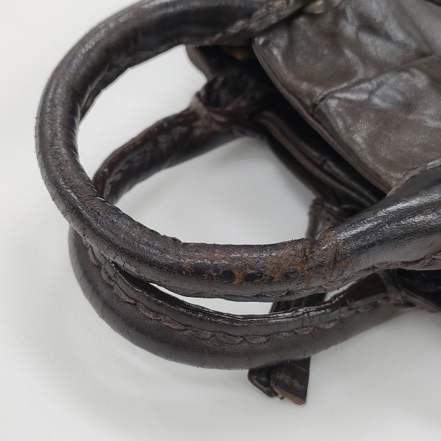 状態 | 【参考ランク】B-C 【全体の印象】 使用感が見受けられますが、使用する上で支障となるような大きなダメージではないと思います。 【状態】使用感、経年変化 【風合い】色ムラ 【細かく見ると】 サイド、持ち手、ショルダー、入り口部分等、所々ひび割れあり 黒っぽく、レザーが硬くなっている箇所あり ※色ムラ、シワ感などはどこまでが元々のもので、どこまでが使用によるものか判断ができません。 【商品特性について】 ※元々風合いのある素材を使ったブランドの為、多少のダメージ、ユーズド感はご了承下さい。商品特性をご理解頂ける方のご購入をお待ちしております。 ※保管時にできた折りジワ、繊維付着などはご容赦下さい。 |