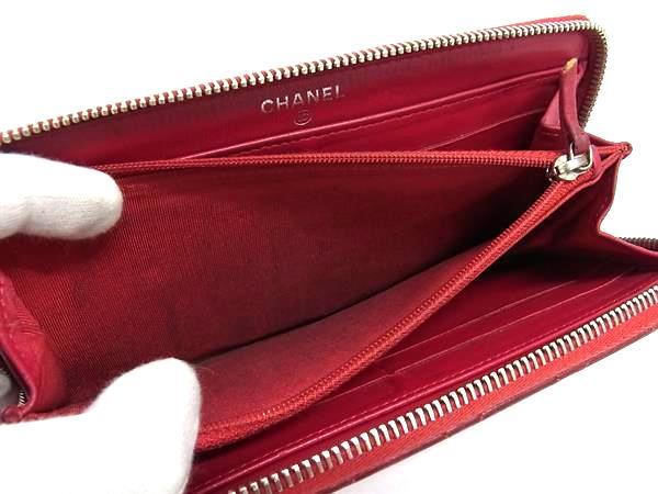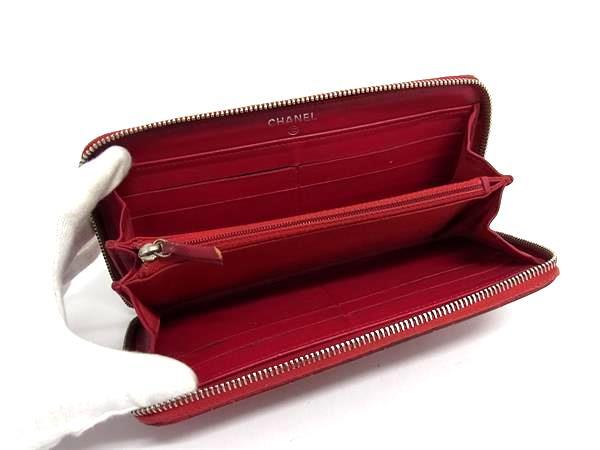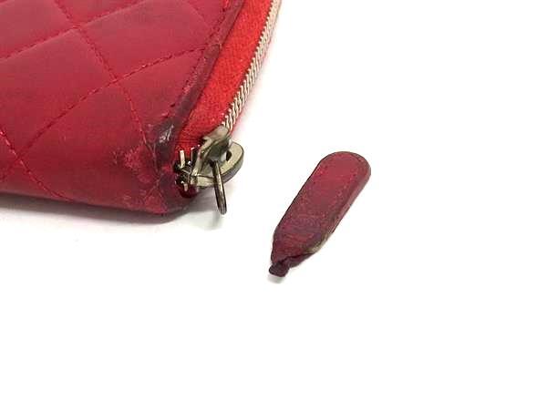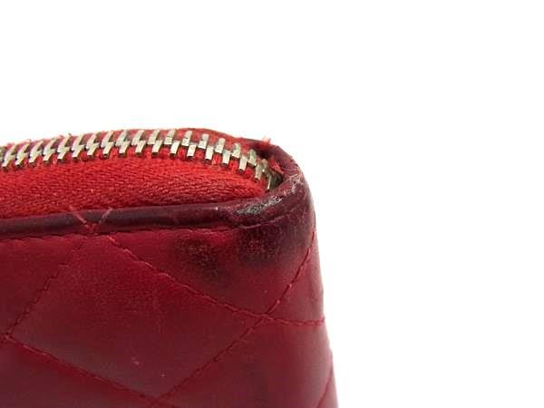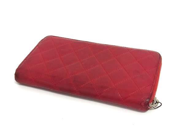 1円 CHANEL シャネル ココマーク マトラッセ ラムスキン ラウンドファスナー 長財布 ウォレット 小銭入れ 札入れ レッド系 FR4371