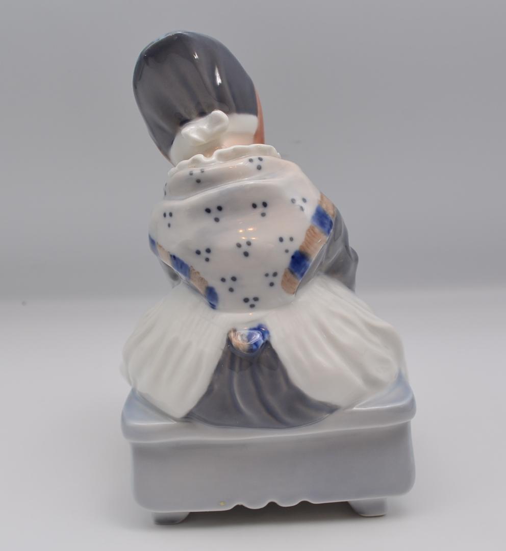 アマー島(Amager)はデンマークの首都コペンハーゲン近くにある地域です。アマー島の伝統的なカラフルで細やかな刺繍が施された衣装を身にまとった少女を表現しています。スカート、エプロン、頭に巻いたスカーフなど、デンマークの伝統的な民俗衣装が精密に描かれています。