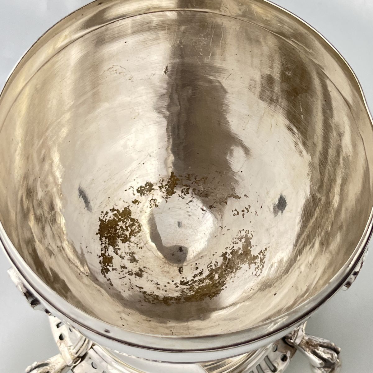 内部仕切りライナーにかなりの経年、また底面に変色がございます。