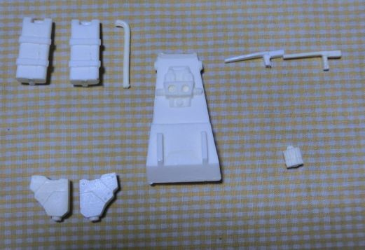 元袋の底面がやぶれ欠品多数で画像のパーツ9個のみ残存しています。ミニレジンキットで完成時の大きさは不明です。本体パーツは5㎝位です。