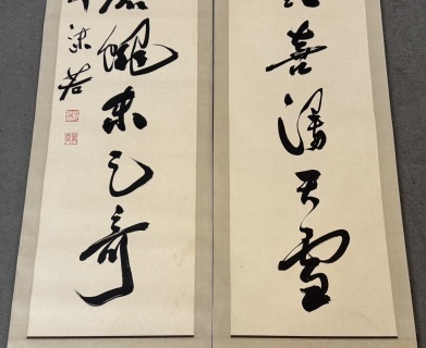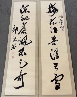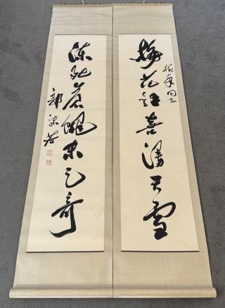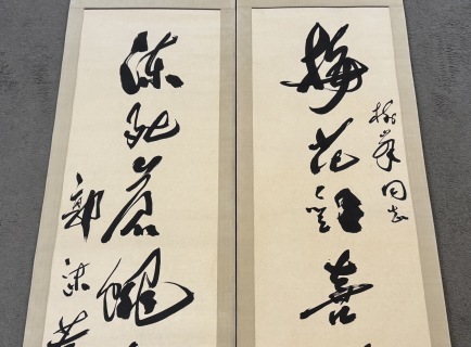 『東京株式会社』 旧家蔵出 中国画 古美術 [郭沫若書道対聯] 掛け軸 真筆逸品 肉筆保証 中心尺寸135.5X33.5cm ABC729