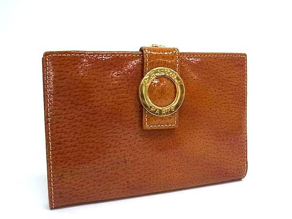CELINE セリーヌ サークル金具 パテントレザー 二つ折り がま口 財布 ウォレット 札入れ 小銭入れ メンズ ブラウン系 DG8487