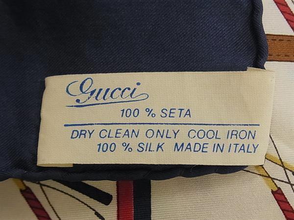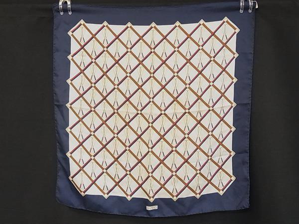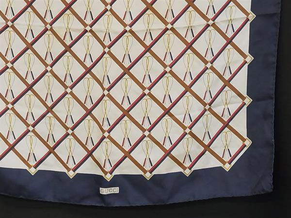 GUCCI グッチ シルク100% スカーフ ストール ショール レディース ネイビー系×マルチカラー DI2548