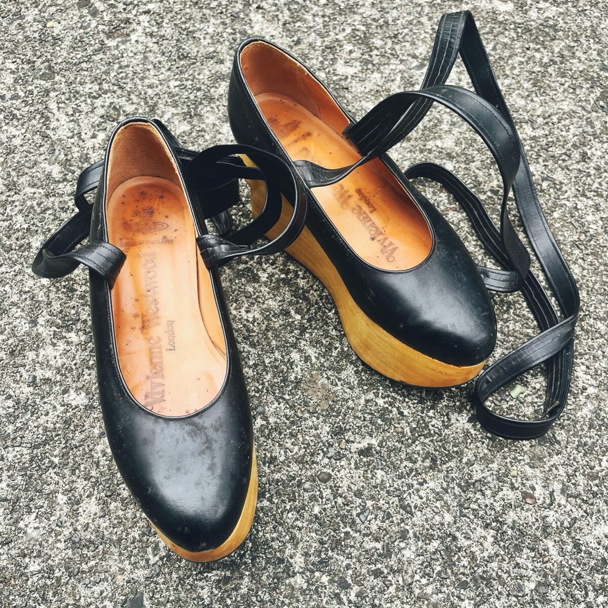 購入後一、二回くらいのみ履いたように記憶しています。長年保管していた中でウッドやレザーに多少の傷などの痛みはございます。ソールリペア済みです。
