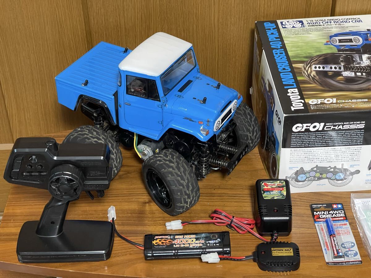 【すぐに遊べる・組立・塗装済】タミヤTAMIYA/電動RCカー トヨタランドクルーザー40ピックアップ(GF-01シャーシ)、プロポ・バッテリー・充電器フルセット