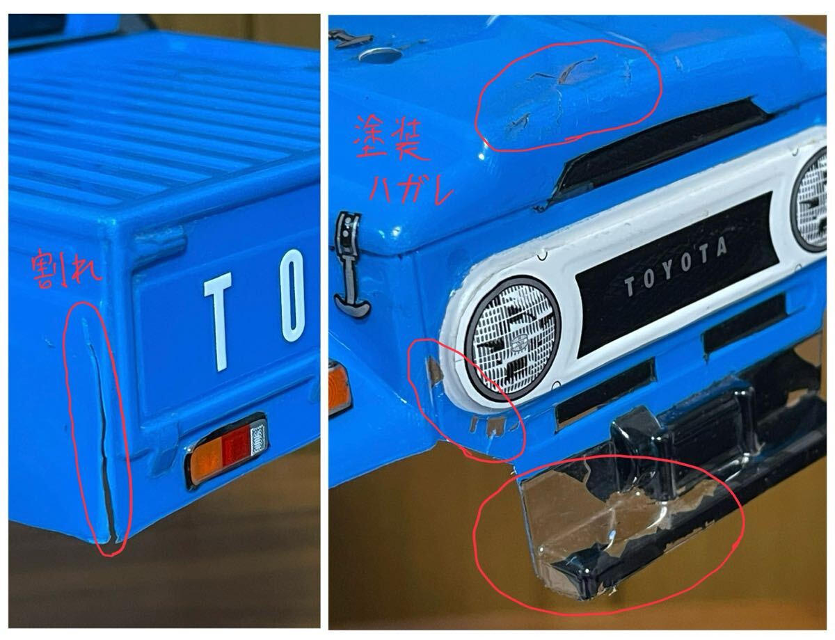 また、数箇所に塗装の剥がれやボディの割れなどもありますので、