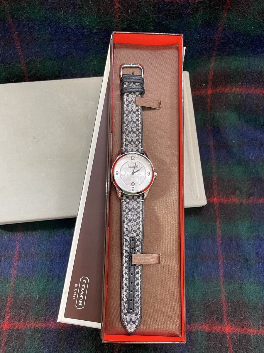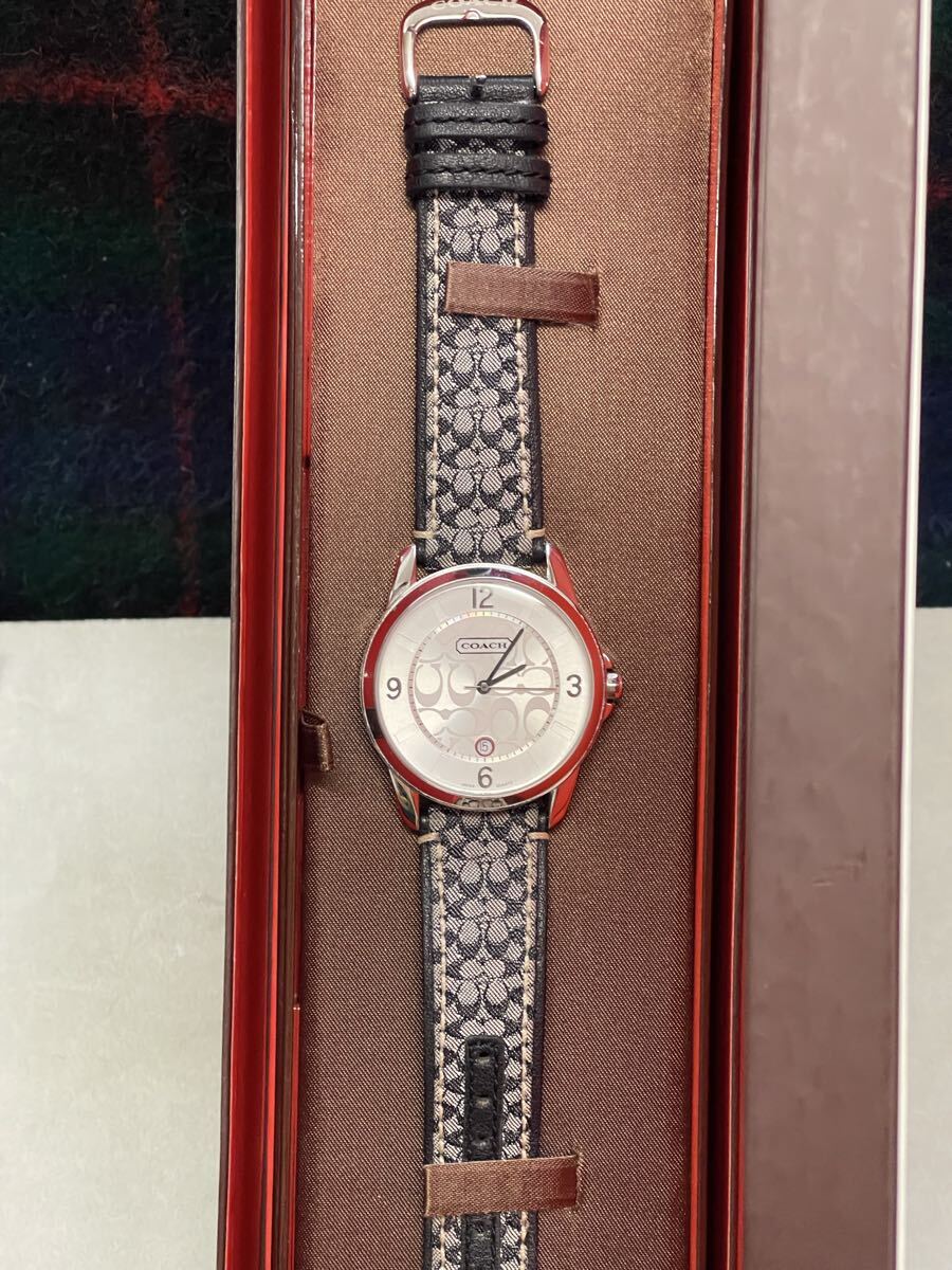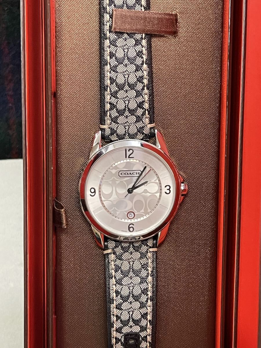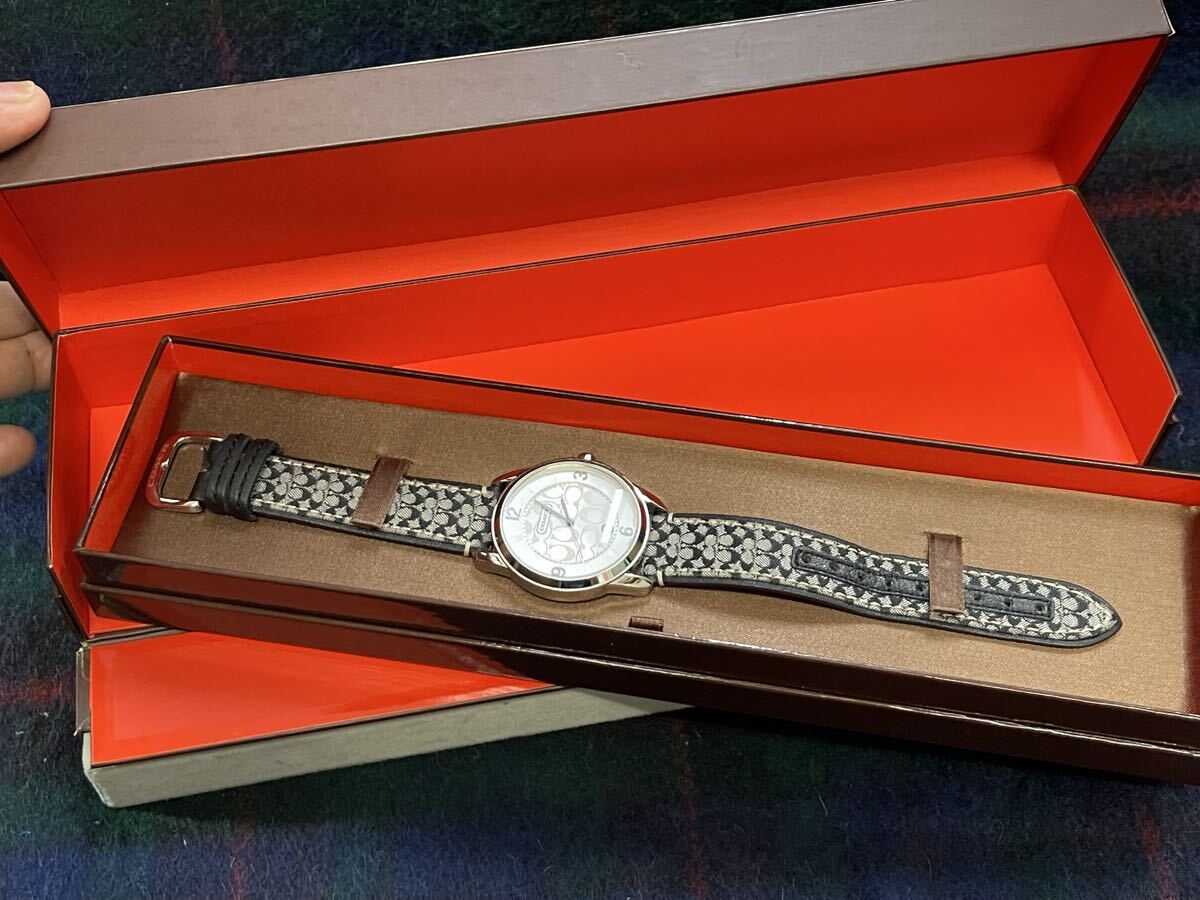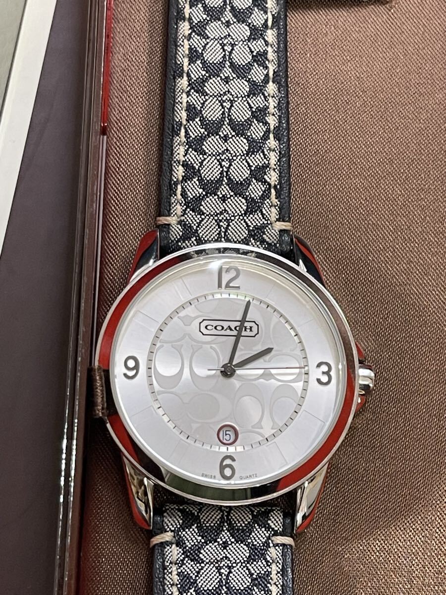 稼働 COACH 腕時計 シグネチャー柄 シルバー ラウンド レディース 稼働OK