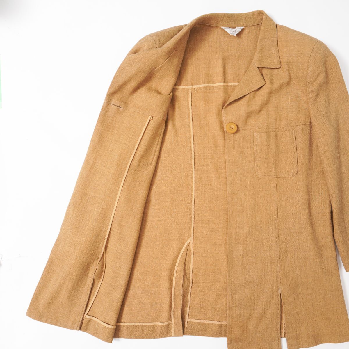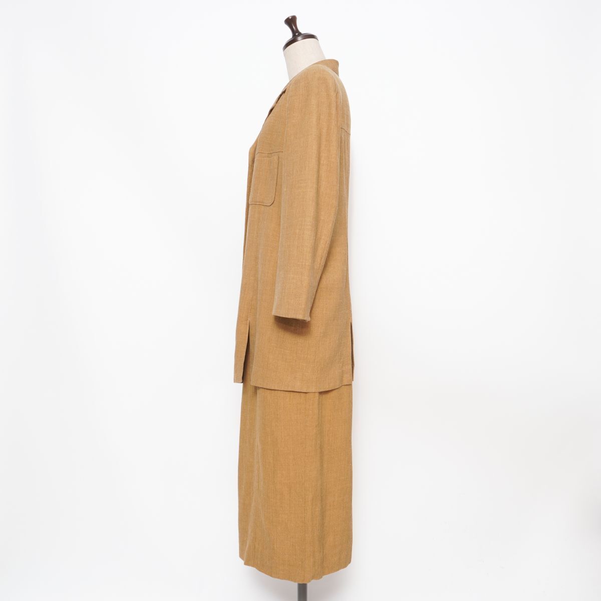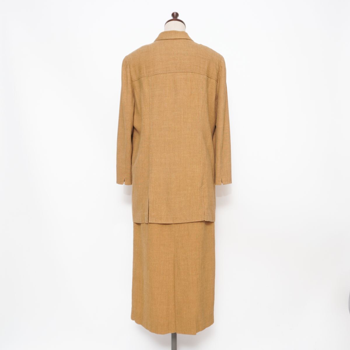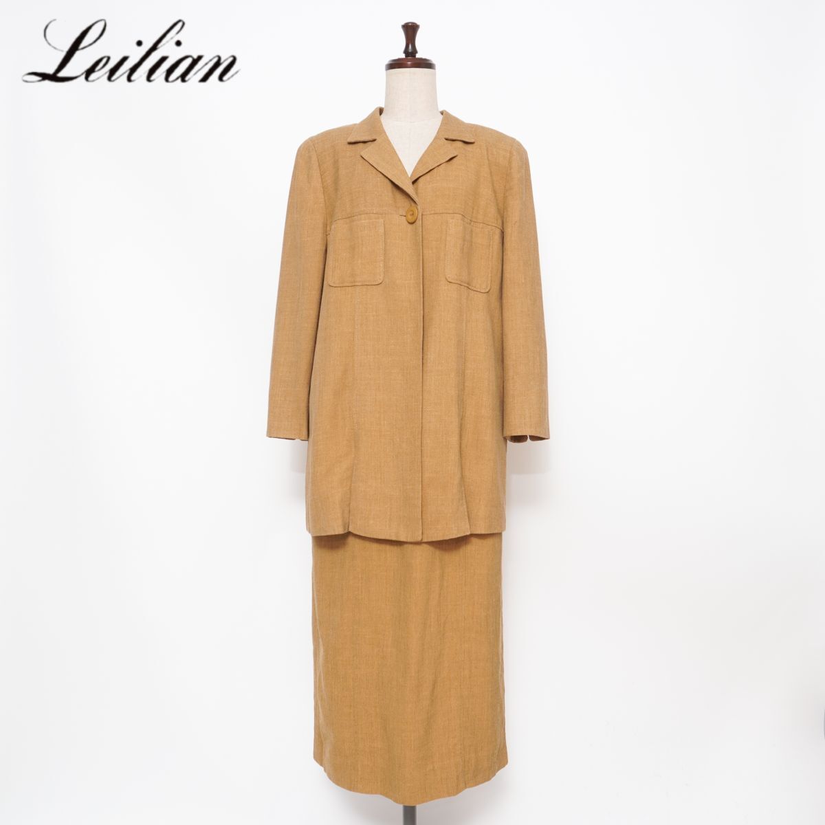 Leilian レリアン シルク・リネン混 セットアップスカートスーツ ミモレ丈 イタリア製生地 レディース キャメル サイズ13+*HD867