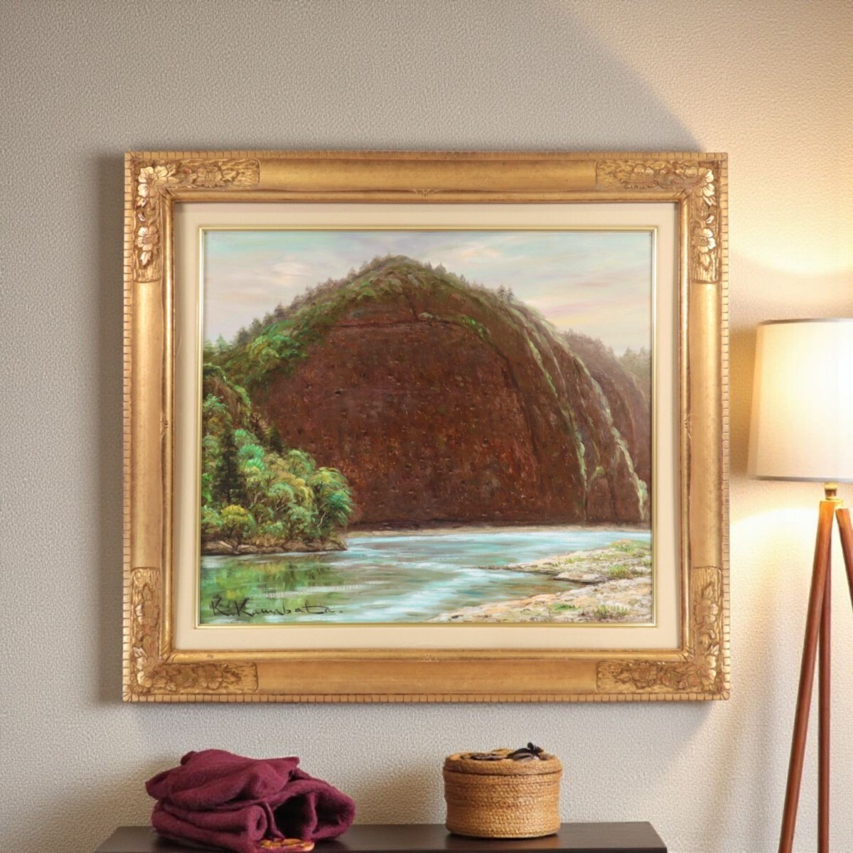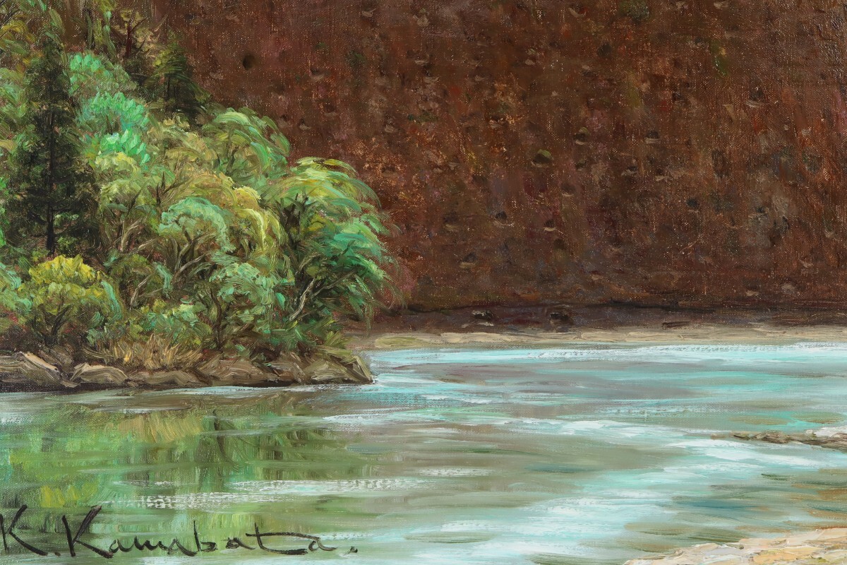 ★川端健太郎 油彩「古座川と一枚岩」★