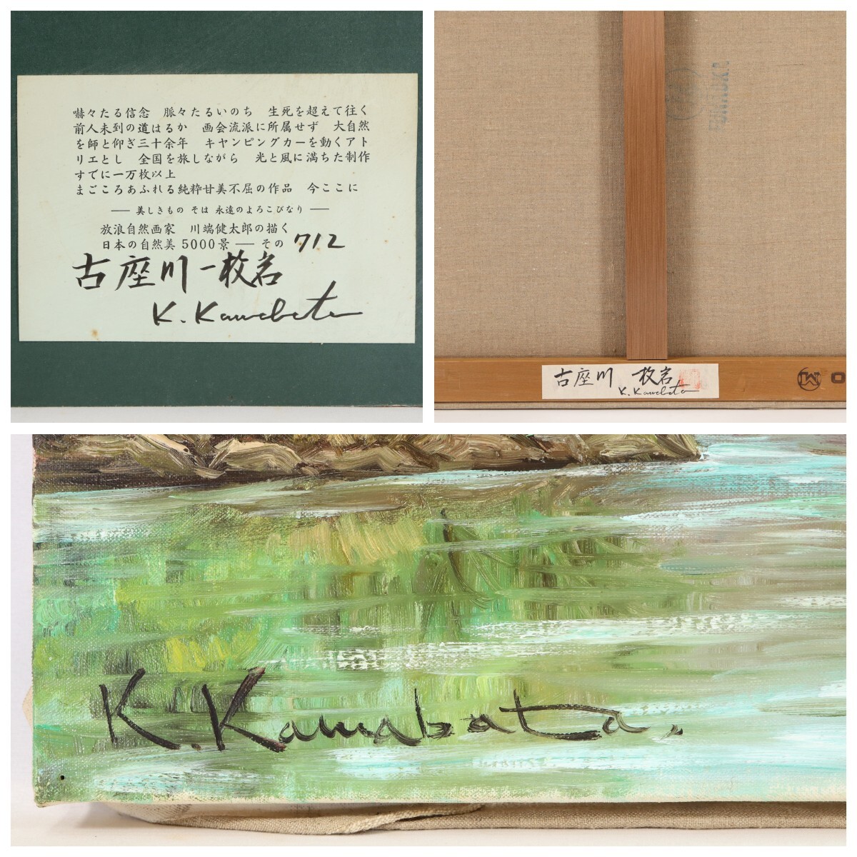 真作 川端健太郎 油彩「古座川と一枚岩」画寸 F10 大阪府出身 無所属 光風アトリエ主宰 和歌山県古座川町 力強く描く雄大な存在感 11417