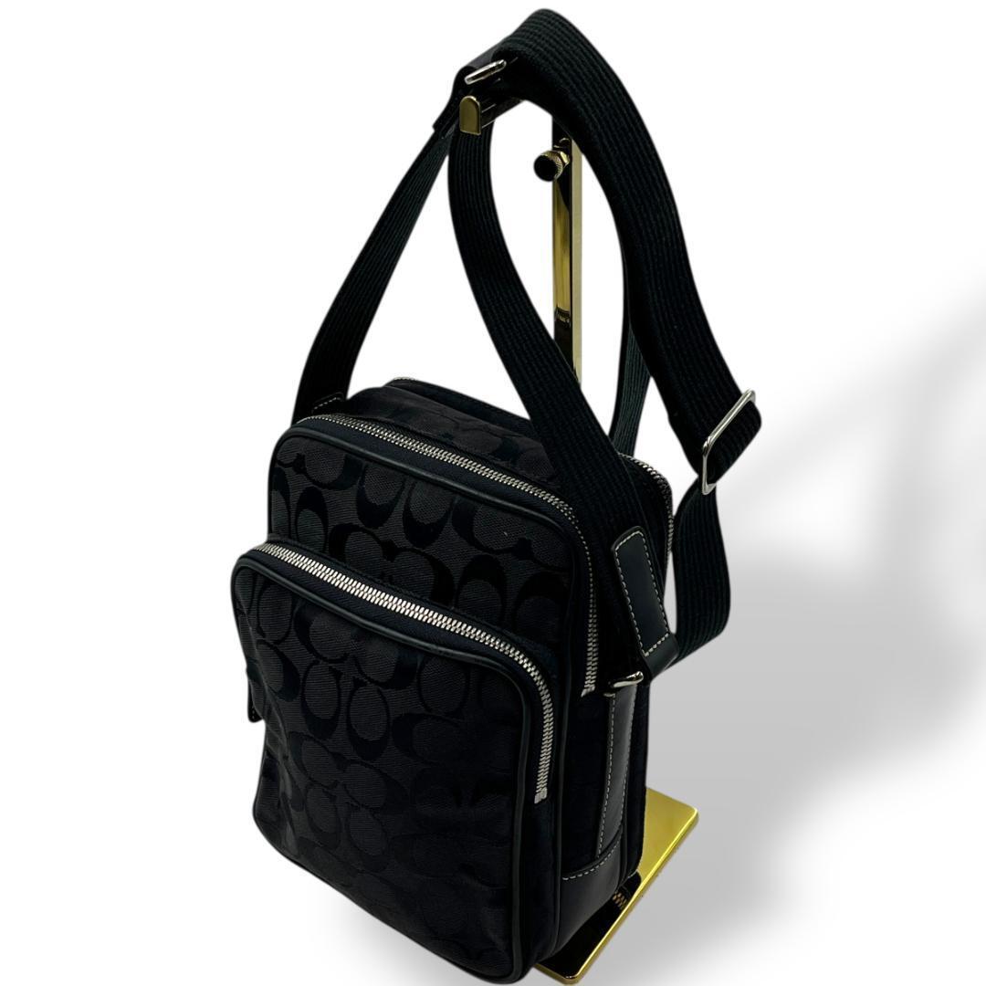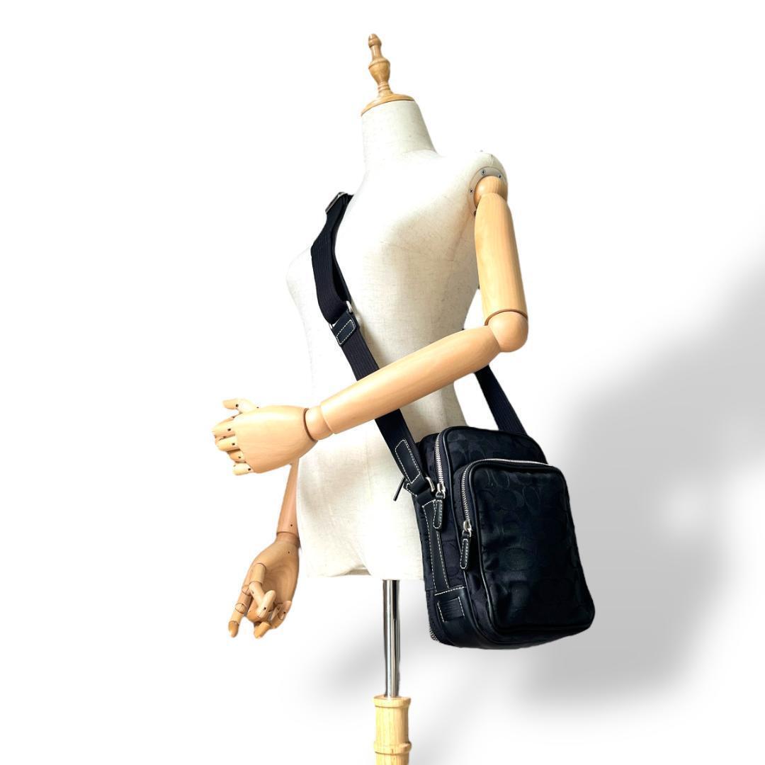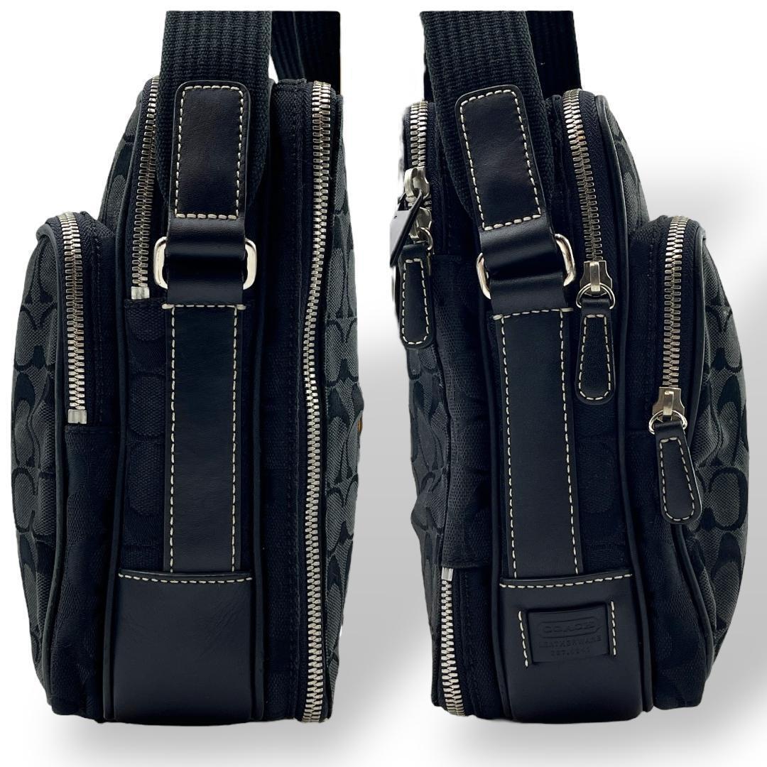 COACH コーチのクロスボディバッグ ショルダーバッグです。ブラックのシグネチャーキャンバス素材。カメラバッグ。
