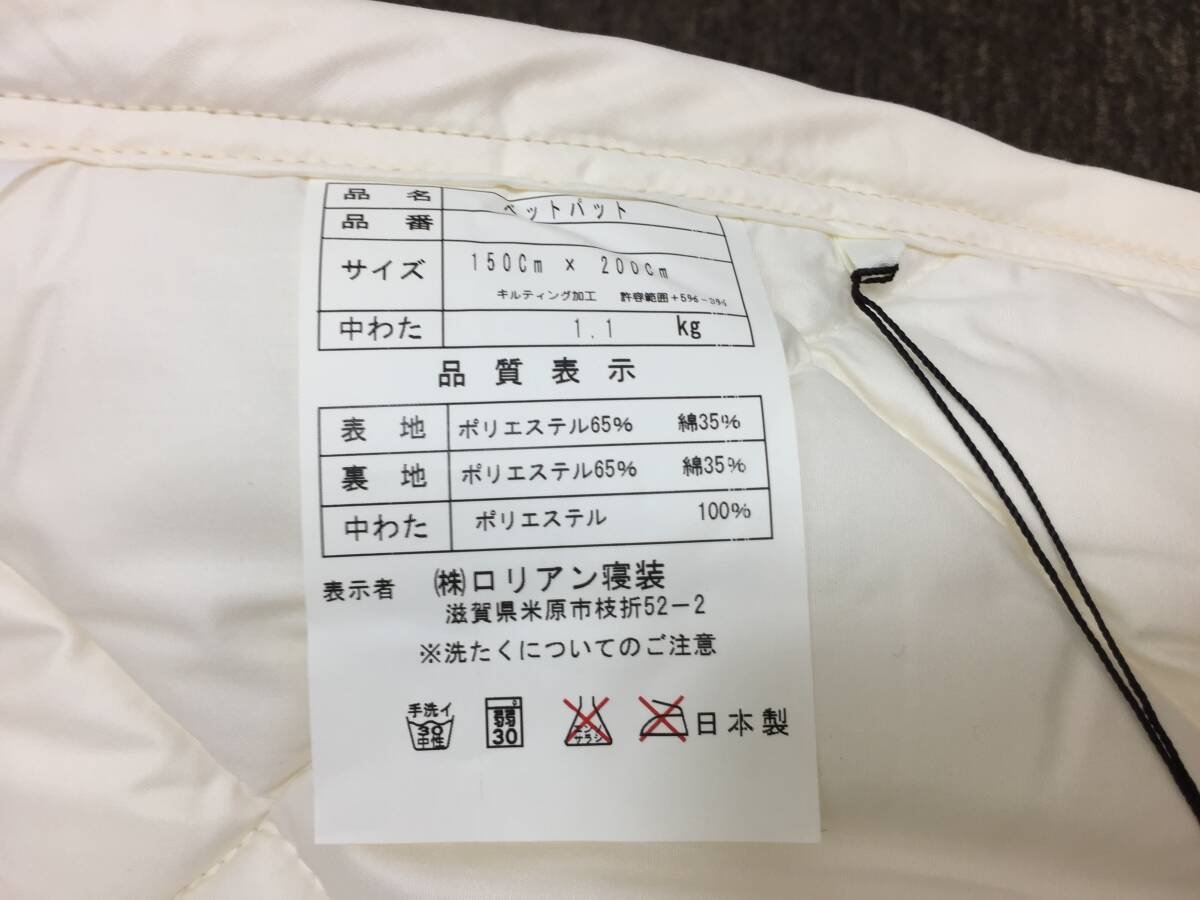仕様・コメント | ●未使用展示品 ロリアン寝装 洗えるベッドパッド ダクロン シングルの出品になります。 ●サイズ:150cm x 200cm ワイドダブルサイズ ●詳細につきましては写真にてご確認ください。 ●寝具屋さんに保管されていた商品になります。シミがございます。 ●発送の際はエアキャップのみで発送させて頂きます。 | |||||||||||||||||||||||||||||||||||