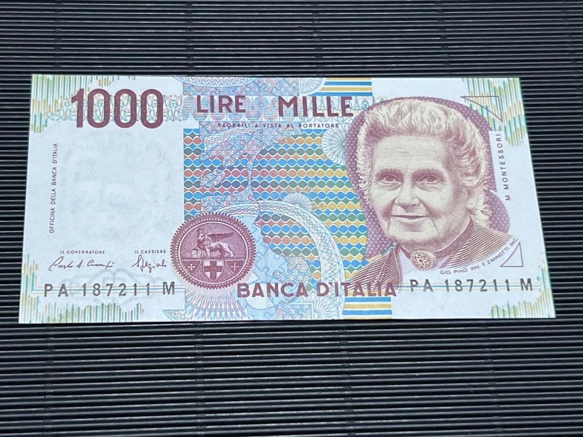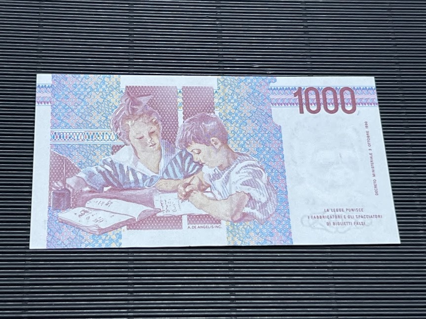 イタリア 1000 Lire札  コレクション向け出品  1990年 極美  #PA187210M