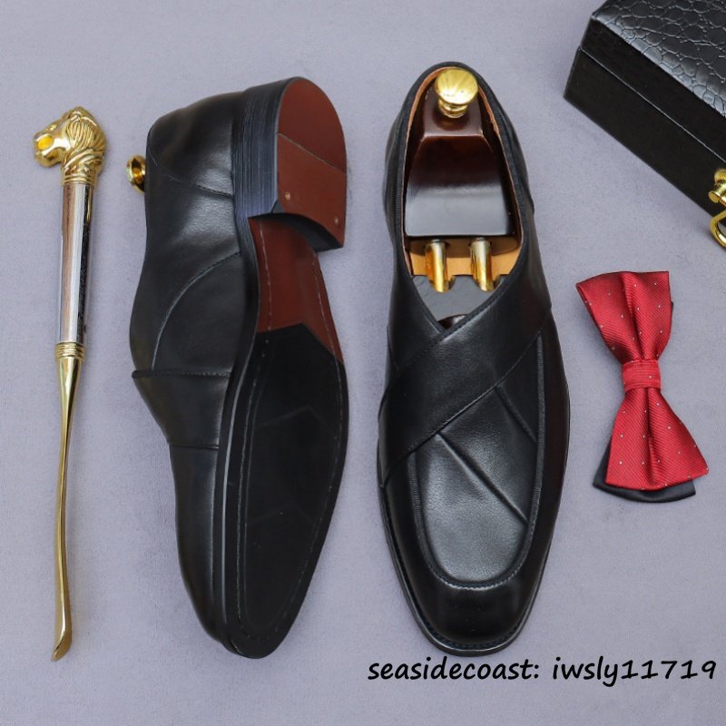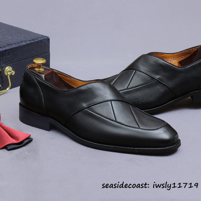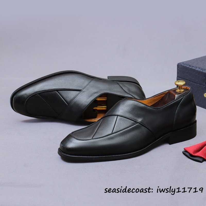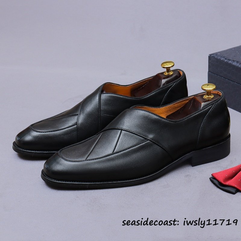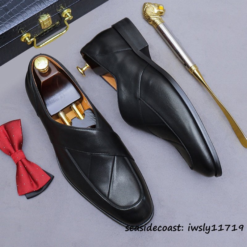 定価9万★ビジネスシューズ メンズ 牛革 レザーシューズ 職人手作り ローファー 紳士靴 本革 手塗仕上げ フォーマル 革靴 ブラック 27.5cm