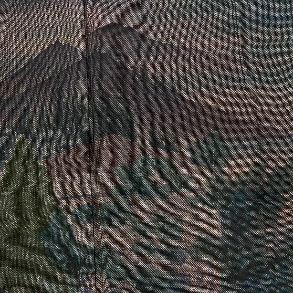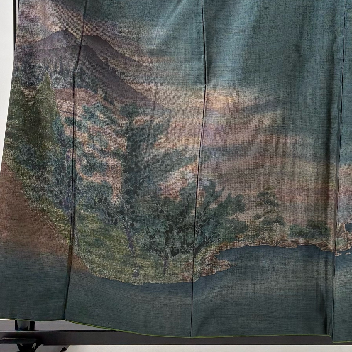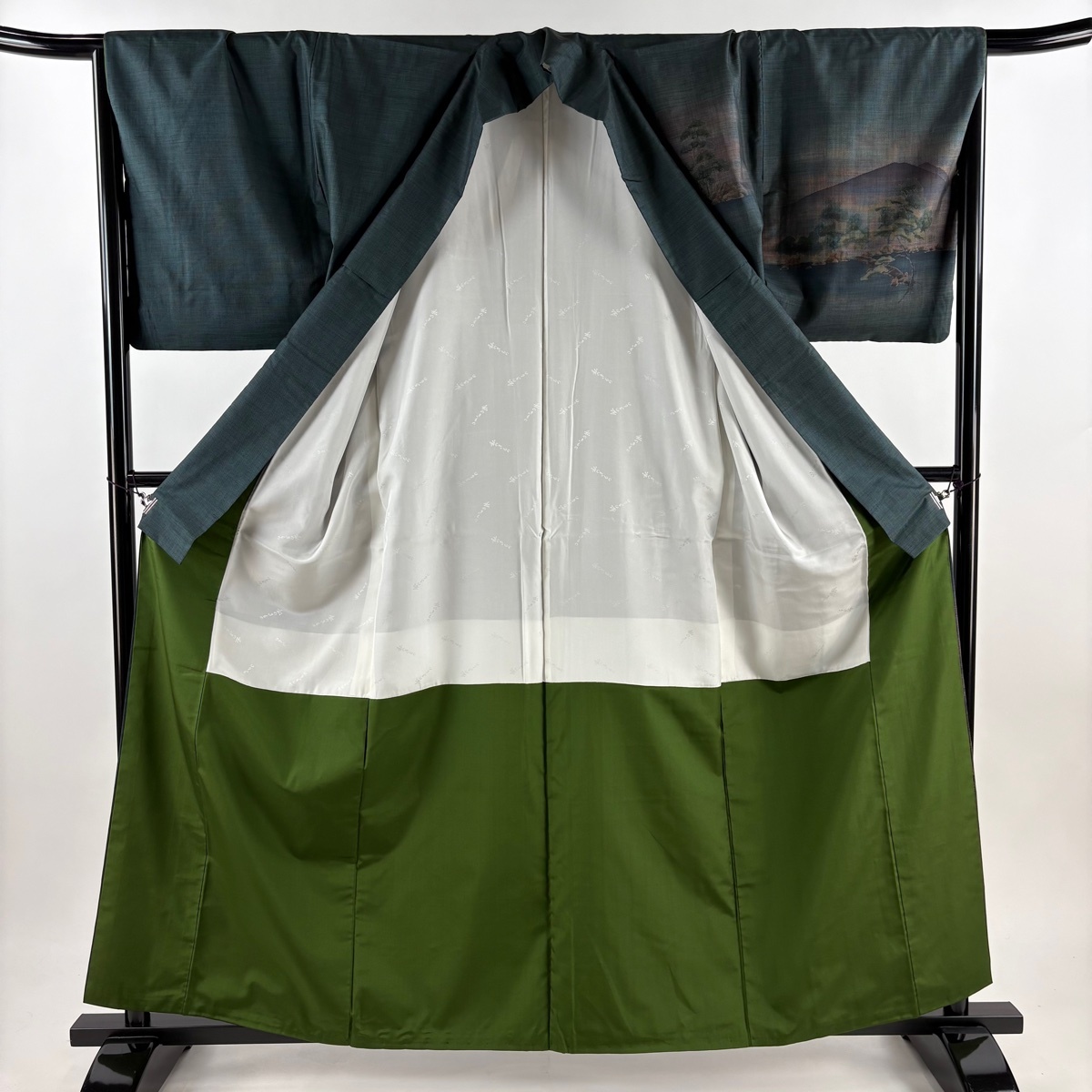 | 付下げ 美品 秀品 落款 紬地 風景 清水寺 深緑 袷 身丈160 裄丈67 M 正絹 【中古】 |