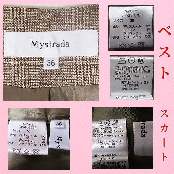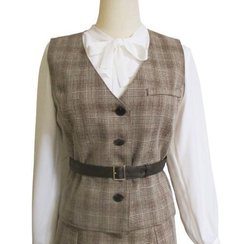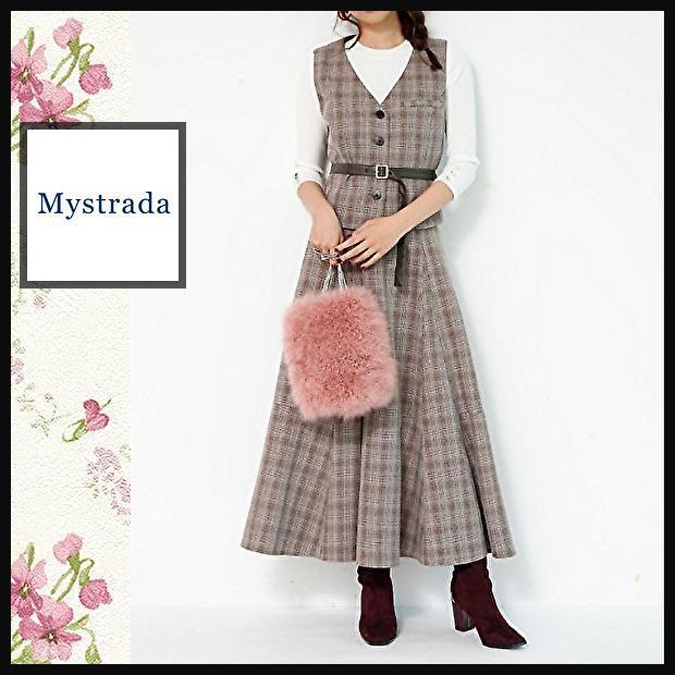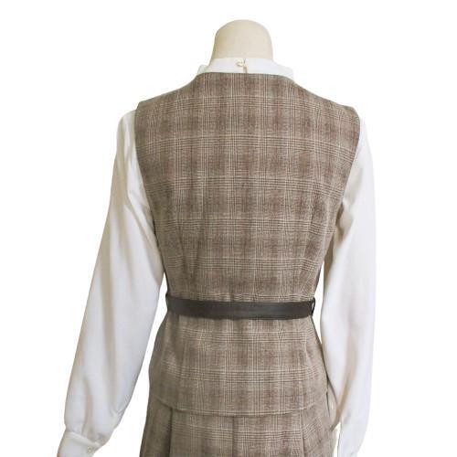 【マイストラーダ】セットアップ ベスト スカート チェック ブラウン系 36 Mystrada ワンピース風 通勤オフィス ベルト 匿名発送