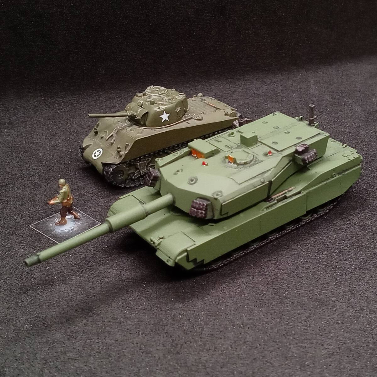1.商品説明 1/144 CATTB主力戦車,”伝説の140mm砲!M1エイブラムスの先進技術実証・実験戦車!”,グリーン塗装.アメリカ,現代,自作ver 塗装済み完成品。出品者による自作品。 【かんたん解説】 アメリカの主力戦車。現代(1996年)。先進技術実証のテスト戦車。 CATTBは、 M1エイブラムス戦車をベースにした 実験的な技術試験車。 あくまでも 次世代戦車のための 技術検証プラットフォーム。 正式な量産車や 制式化された戦車ではない。 とはいえ、 非常に興味深い戦車。 マニアックな戦車ファンの間では 伝説の戦車。 1輌のみの試作戦車だが、 現在も その行方を追うマニアや 保管倉庫を特定しようとする ネット記事もある。 CATTBの伝説となる要因は 超巨大主砲にある。 140mm滑空砲。XM291砲という。 55口径にもおよぶ 長砲身。 圧倒的な貫通能力。 現在のロシア最新鋭戦車 T14アルマータ主力戦車を 間違いなく軽々と 撃破できるであろう。 雄々しさを貴ぶ アメリカの戦車マニアには 伝説となるのも当然だ。 CATTBそのものは M1エイブラムスの 後継や改良型のための 先進技術試験に使われた。 1980年代後半〜1990年代初頭。 M1A1エイブラムスの シャーシと装甲をベースとしている。 XM291 140mm滑腔砲は 従来の120mm滑空砲では 将来的に 威力不足すると想定されたため開発。 超大口径砲。 高初速で APFSDSの威力を大幅アップさせ、 当時の ソ連の T-80U主力戦車などに対抗する意図があった。 威力は先述の通り、 現代2025年でも間違いなく最強火砲となるだろう。 問題点として 140mm弾はサイズが大きく、 取り扱いが困難となる。 これに関しては 自動装填装置を搭載して対応。 M1エイブラムスは人力装填だが、 CATTBは砲塔後部に カセット式 自動装填装置を搭載。 これにより装填手が不要となり、 乗員は3名に減少。 砲塔設計も根本から見直し、 新型でさらに大型の砲塔となった。 装甲形状・内部配置を再構築。 砲塔後部に 分離弾薬収納、 被弾時の安全性向上。 先進技術実証のため、 無人砲塔にする案もオプションにあった。 装甲素材も 先進装甲 (劣化ウラン)含む新素材。 複合装甲のさらなる進化を図る。 モジュール式の複合装甲の導入で 交換容易化も検討された 。 M1エイブラムスは 先行した第3世代MBTであるがゆえに、 現在に至るも 装甲はモジュール式でないが CATTBで検討されている。 デジタル化とセンサーを 一層の強化と進歩させ、 FCS(火器管制システム)も進化版。 赤外線・レーザー距離計・デジタル表示などを搭載。 おそらくは 現代のM1A2SEPに匹敵する最新レベルに近いだろう。 以上のように CATTBは 非常に高性能な試作車だったが、 量産はしなかった。 なぜなら、 冷戦は終結(1991年)。 超大国・軍事国家の ソ連のが崩壊したことにより、 140mmのような 超兵器が必要とされなくなった。 140mm砲と自動装填装置は 高コストで複雑なシステム。 整備・運用も大変。 M1エイブラムスの改良で十分! M1A2や SEPシリーズで機能向上できたため、 わざわざ CATTBを採用する必要がなかった。 かくして、 CATTBは制式化されることはなかった。 もとから、 量産・制式化しないということで、 コストや整備性を考慮しない ワンオフの 超高性能戦車として 先進技術検証に専念できたのだ。 だが、 実戦に投入していたら、 T14アルマータをも撃破できる 最強戦車であったであろう! 戦車マニアの間では 当然のごとく 伝説の戦車となったのだ。 2.注意事項 2-1. 評価の悪い御方、神経質な御方はご遠慮下さい。 入札されても、出品者の判断でキャンセル(落札者都合)する場合がございます。 2-2. 落札後2日以内の連絡、4日以内のお支払い願います。 ご連絡・お支払が確認できない場合、落札者都合のキャンセルとさせていただきます。 2-3. ノークレーム・ノーリターンでお願いいたします。 実物とパソコン・スマホの商品画像で印象が異なる場合もございます。 完成品の場合は個人によるハンドペイントのため、レジンキットの場合も材質上、個体差があります。 梱包は厳密を期しますが、輸送中の事故による破損はご自分で修理願います。 3.発送方法 宅急便コンパクトで。ゆうパックおてがる版も対応いたします。 お支払後3日以内に発送いたします。2023/10/04以降での配送料。 3-1. 宅急便コンパクト ゆうパックより安く。 匿名発送。追跡サービス付き。 配達時間指定OK!補償付き。 同梱対応可能です(3個程度まで)。取り置きも可能です(1週間程度)。 宅急便コンパクト発送費。(神奈川県より発送) 700円 【北海道】北海道 540円 【東北1】青森、岩手、秋田 480円 【東北2】山形、宮城、福島 〃 【関東】茨城、栃木、群馬、埼玉、千葉、東京、神奈川、山梨 〃 【信越】新潟、長野 【北陸】富山、石川、福井 〃 【東海】静岡、愛知、岐阜、三重 540円 【近畿】滋賀、京都、大阪、兵庫、奈良、和歌山 590円 【中国】鳥取、岡山、島根、広島、山口 【四国】香川、徳島、愛媛、高知 700円 【九州】福岡、佐賀、大分、熊本、長崎、宮崎、鹿児島 【沖縄】沖縄 3-2. ゆうパ