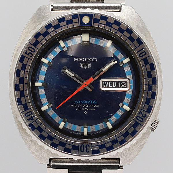 デッドストック級 稼動 セイコー 5スポーツ 青文字盤 6119-8300 AT/自動巻 メンズ腕時計 0080300 4BJT KTU ABC 15910