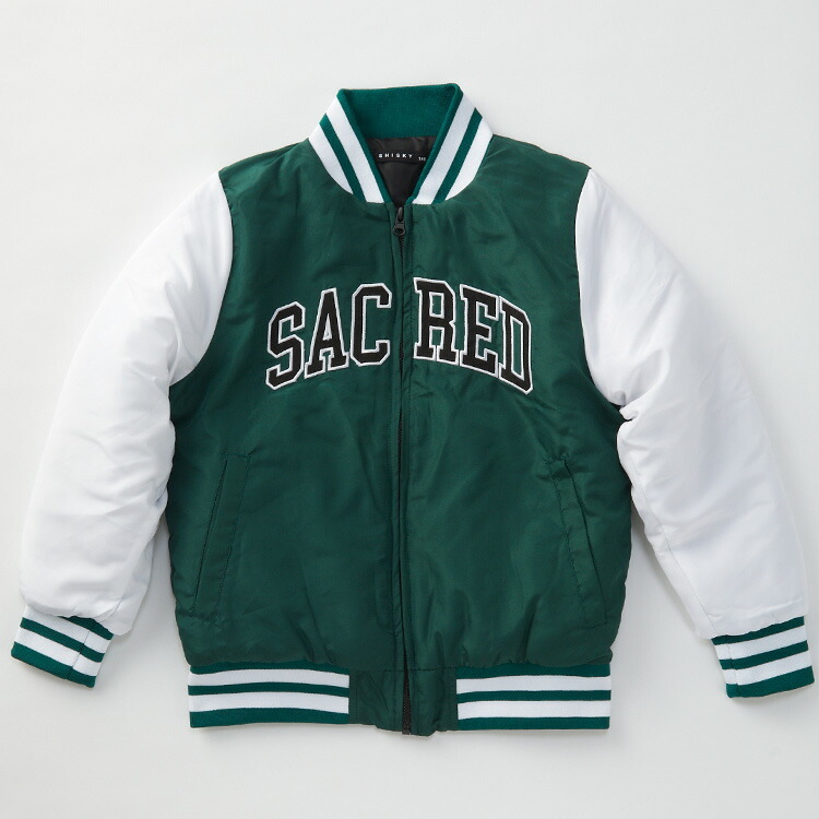140cm スタジャン 子ども キッズ ブルゾン 中綿 スタジアムジャンパー グリーン(SACRED)